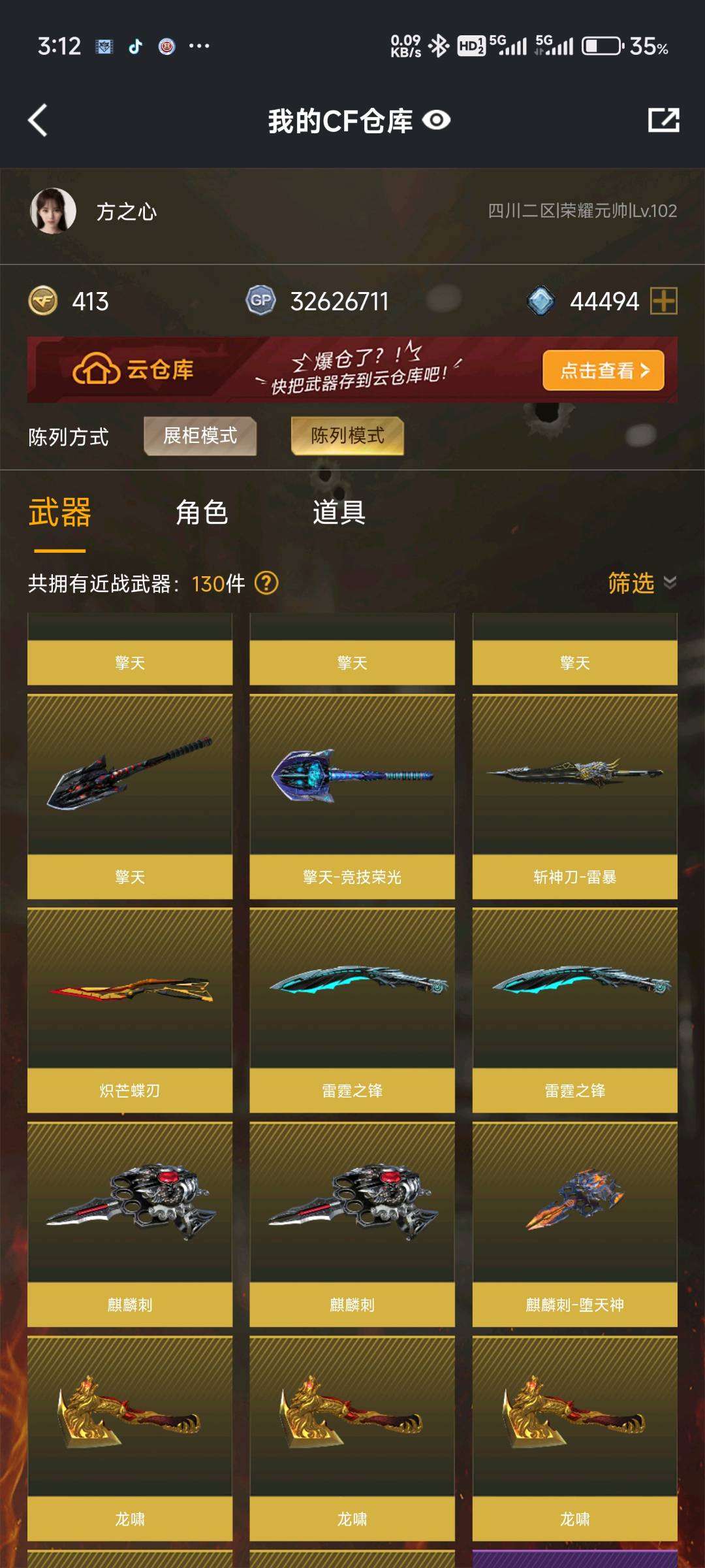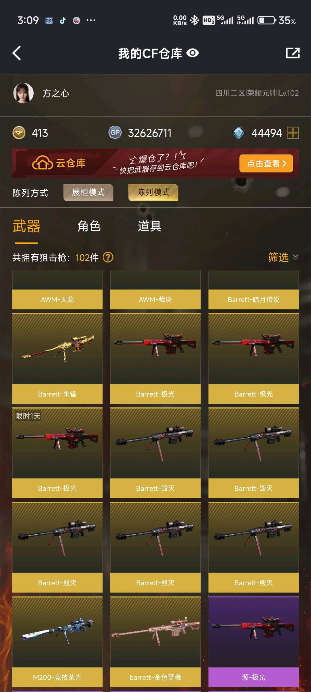 • 游戏区服:穿越火线 / 电信区 / 四川二区