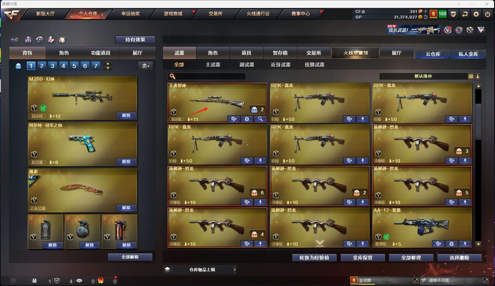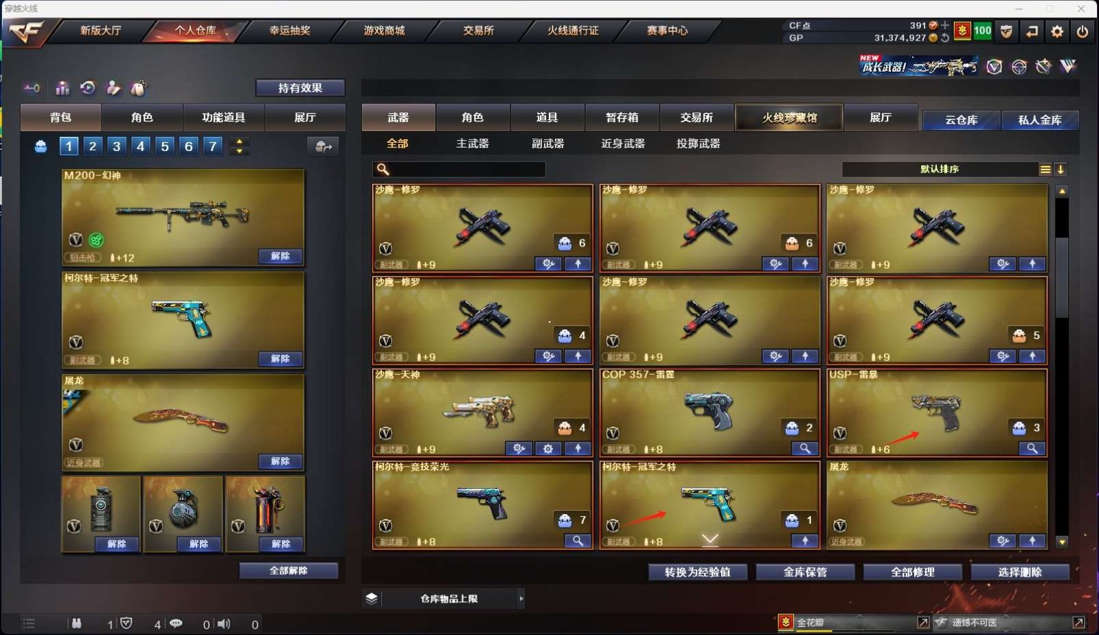 【m200幻神+柯尔特冠军之特】【m200竞技荣光套装+usp雷暴+电竞教官悠悠】【王者星神】【白虎+电玩粉兔皮肤】【qbz03王者蔷薇】【6烈龙+4盘龙】【m4a1雷霆套装】【毁灭+毁灭音效卡+荣耀之怒皮肤+ags15冠军皮肤】【火麒麟+火麒麟音效卡】【黑骑士+黑骑士音效卡+冠军之势皮肤】【雷神+雷神音效卡+宠儿皮肤+荣耀之魄皮肤】【王者之翼 王者之幻 王者之怒】【芭蕾特金色蔷薇 烈火 天启 战神 黑武士 超新星 黑龙 猎神 玫瑰精灵 天龙 裁决 黑武士锦绣游龙 极光 aa12雷霆 武圣m4 ak47猩红传说 ak47战士】——【热门武器/小人呛】——【火麒麟灵狐 芭蕾特零水下丽影 m37葵 cop旗袍 】——【usp雷暴 柯尔特冠军之特 cop357雷霆 柯尔特竞技荣光 天神 修罗】——【龙啸 龙啸堕天神 尼泊尔雷霆 麒麟刺 擎天 擎天竞技荣光 屠龙】——【堕天神投掷武器套装*4+雷霆投掷武器套装*5+竞技荣光投掷武器套装】——【角色】【电竞教官云悠悠 葵 迷迭香 零 炫 樱】;USP-雷暴,柯尔特-冠军之特,电竞教官-云悠悠,RPK-盘龙,M200-幻神,Scar Light-白虎,