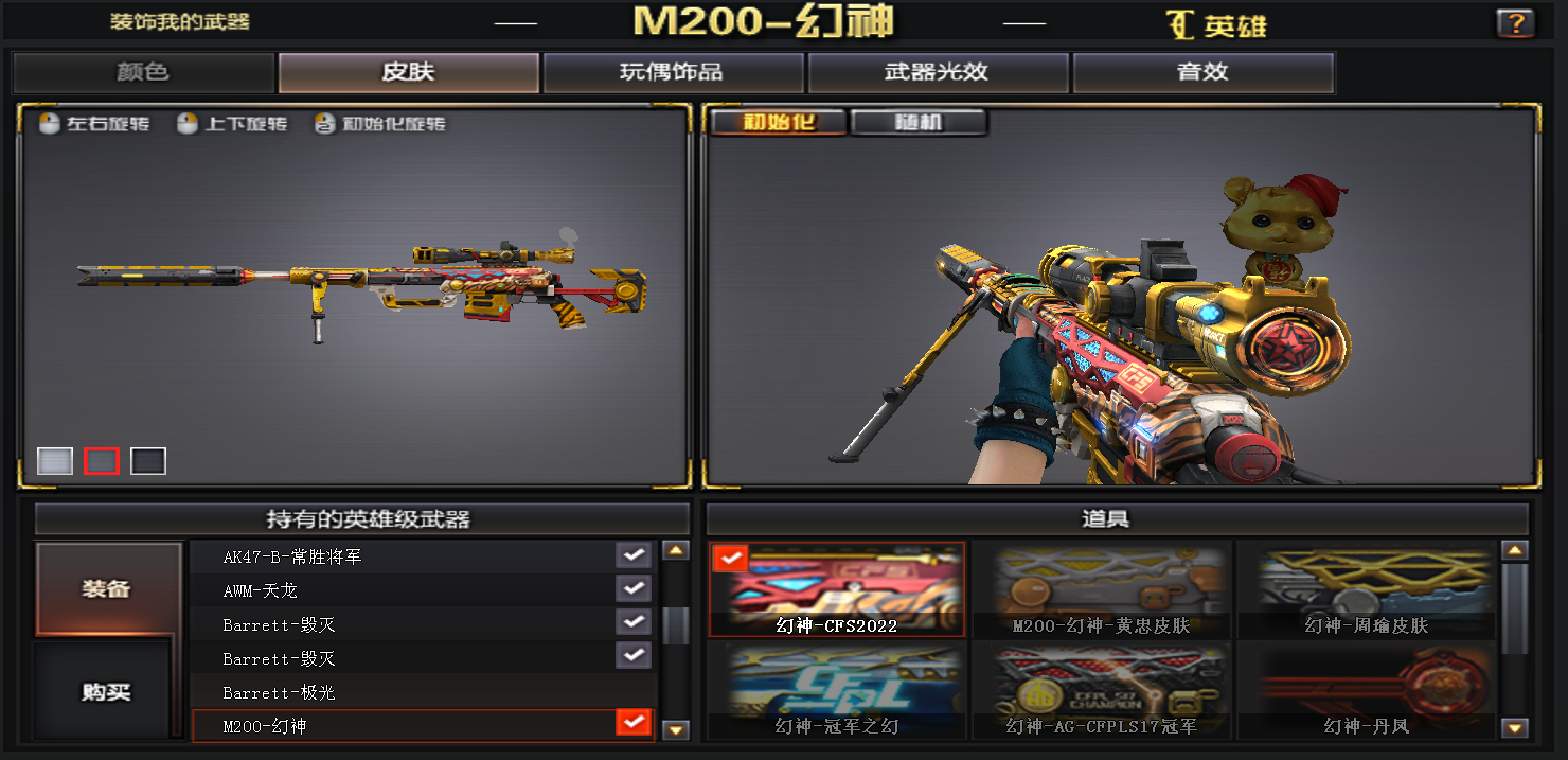 M200幻神CFS2022皮肤幻神音效卡朱雀白虎王者蔷薇六烈龙四防角色幻神三套