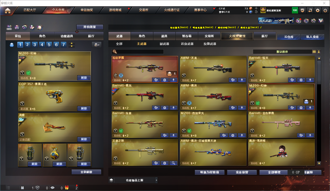 【★★传说梦魇★★】【m200-幻神带幻神-ag17冠军皮肤带幻神-丹凤皮肤】【m200-竞技荣光】【scar白虎带白虎-暗星皮肤带音效卡】【qbz金色蔷薇】【柯尔特-竞技荣光】【柯尔特-电竞装甲】【cop 357-雷霆王者】 【四防角色王者葵-惊若翩鸿】 【四防角色王者-魅影】【雷神×2带雷神宠儿皮肤带雷神-烈火皮肤带雷神-荣耀之魄皮肤带音效卡】【黑骑士×4】【barrett-金色蔷薇】【盘龙×2】【炼狱】【烈龙×2】狙击呛:【传说梦魇】【m200-幻神】【m200-竞技荣光】【裁决】【barrett-朱雀】【barrett-金色蔷薇】【天龙】【毁灭】【极光】【裁决-雪莉杨】【awm-裁决-百城联赛天津】【王者之怒】步呛:【scar白虎】【qbz金色蔷薇】【火麒麟】【雷神×2】【黑骑士×4】【黑龙】【m4a1-死神】【ak47-黑武士】【ak12-天启】【ak47-机械迷城】【ak47-黑鲨】【m4a1-龙血】【无影-神兵利器】【m4a1-猎神】【王者之心--王者之烈】【黑骑士-海王×2】机呛:【盘龙×2】【炼狱】冲锋呛:【烈龙×2】【烈龙-云海游龙】【死亡之眼】手呛:【柯尔特-竞技荣光】【柯尔特-电竞装甲】【cop 357-雷霆王者】刀具:【屠龙×2 龙啸 擎天×3 麒麟刺 斩神刀-雷暴 擎天-竞技荣光×3 擎天-云海游龙 王者之啸】手雷:【雷暴高爆手雷套 电竞装甲恶棍手雷套 竞技荣光高爆手雷套×4 云海游龙手雷套 雷霆王者高爆手雷套 雷暴闪光丹手雷套】音效卡:【scar白虎音效卡 雷神音效卡 黑龙音效卡 黑骑士音效卡 火麒麟音效卡 毁灭音效卡】角色:【四防角色王者葵-惊若翩鸿】【四防角色王者-魅影】【【云悠悠 零 樱 王者-魅影 修道士 云海玲珑】皮肤:【幻神-ag17冠军 幻神-丹凤】【雷神-烈虎 雷神-宠儿 雷神-荣耀之魄 雷神-耀金 雷神-虎将】【黑龙-冠军之武】【黑骑士-伏羲】【scar light-白虎-暗星】【龙啸-冠军之啸】【屠龙-荣耀之锋】【擎天-冠军之击】【火麒麟-盘古】【毁灭-bean-2020mvp】;电竞教官-云悠悠,RPK-盘龙,QBZ03-金色蔷薇,M200-幻神,Scar Light-白虎,