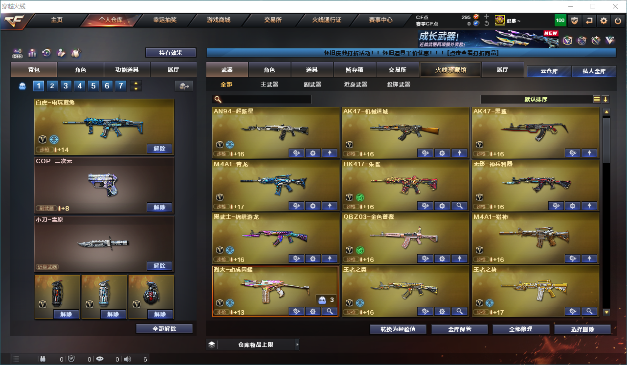 95v❤6烈龙❤斯泰尔蝴蝶❤炼狱❤mm200竞技荣光❤荣耀世冠雷神套❤王者青龙❤5屠龙+王者之锋+炼狱迷你小钢+四防沙漠玫瑰+葵+零+樱+毁灭音效卡+3黑骑士+千变+火麒麟+雷神+死神;荣耀世冠-柯尔特,QBZ03-金色蔷薇,