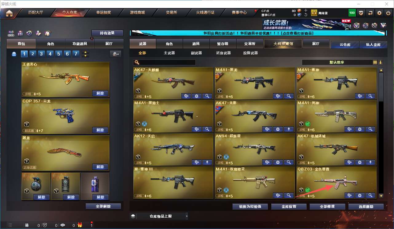 【7烈龙+5盘龙+3炼狱+死亡之眼】【毁灭+毁灭音效卡+cop云龙】【雷神+雷神音效卡】【qbz03金色蔷薇】【王者炎心 王者之光】【火麒麟 黑龙 雷神 黑骑士 无影 死神 天启 超新星 机械迷城 玫瑰精灵 猎神 烈火 天龙 毁灭 极光 裁决 芭蕾特金色蔷薇】——【cop云龙 修罗 天神】【屠龙 龙啸 擎天 麒麟刺 尼泊尔雷霆】——【雷霆投掷套装】——【角色】【魅影 瞳】【王者零】;RPK-盘龙,QBZ03-金色蔷薇,Scar Light-白虎,