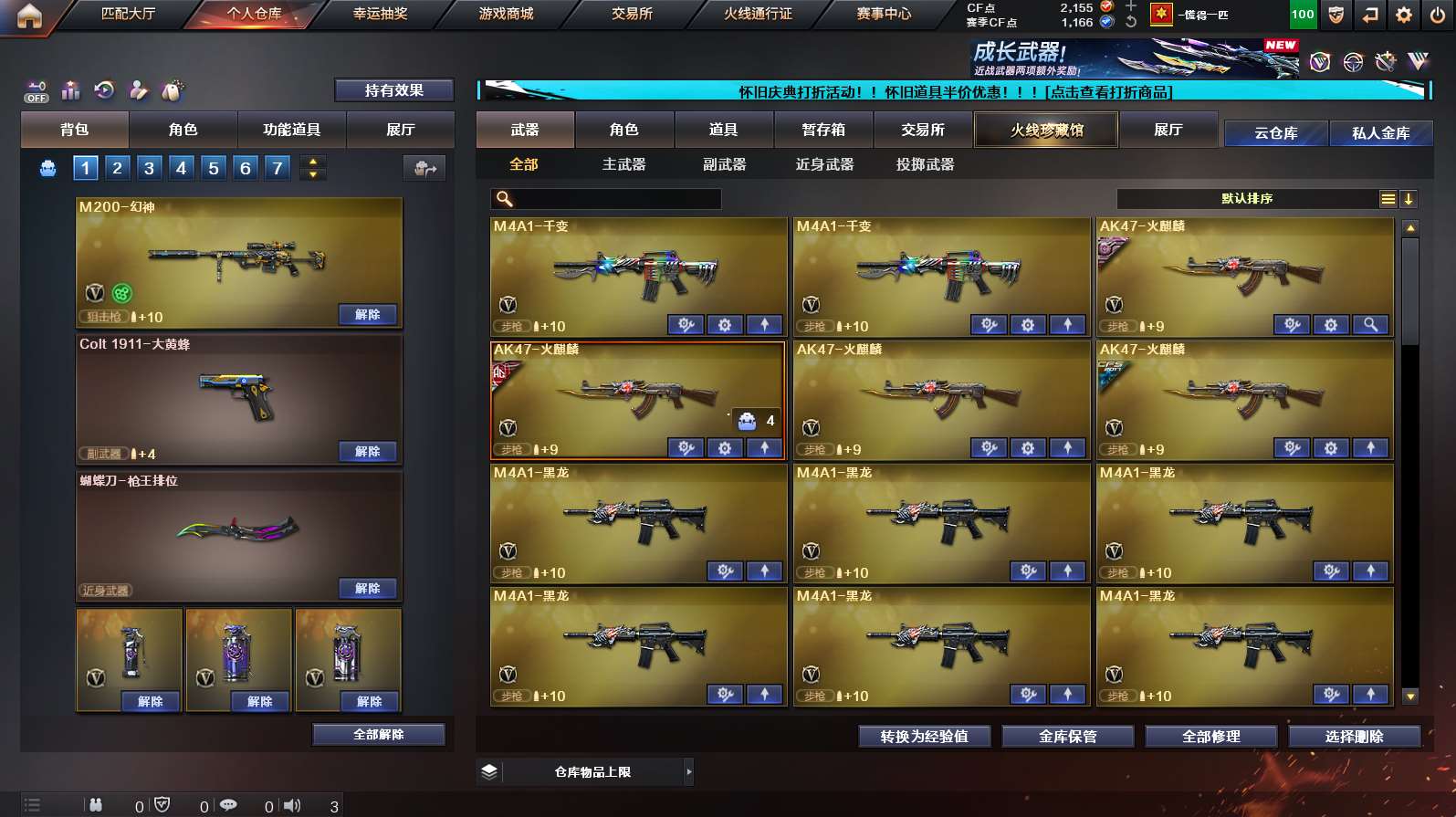 《m200幻神+幻神音效卡》《裁决+裁决运输船》《柯尔特电竞装甲 1911大黄蜂》《朱雀》《王者之翼/鲨》《烈火》《毁灭》《火麒麟》《雷神》《黑骑士》《黑龙》《6盘6烈》《火麒麟灵狐》《王者瞳闭月羞花》《毁灭音效卡 黑骑士音效卡 炼狱百战金芒庆典舞曲音效卡》《雷神宇航兔 黑骑士冠军之势 火麒麟冠军之心 雷神荣耀之魄 火麒麟ag战队皮》;RPK-盘龙,M200-幻神,