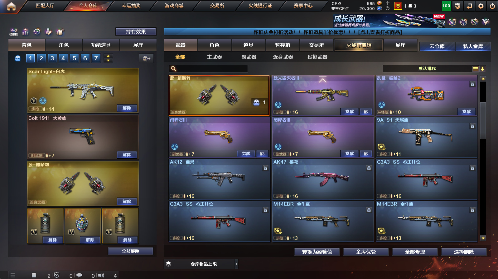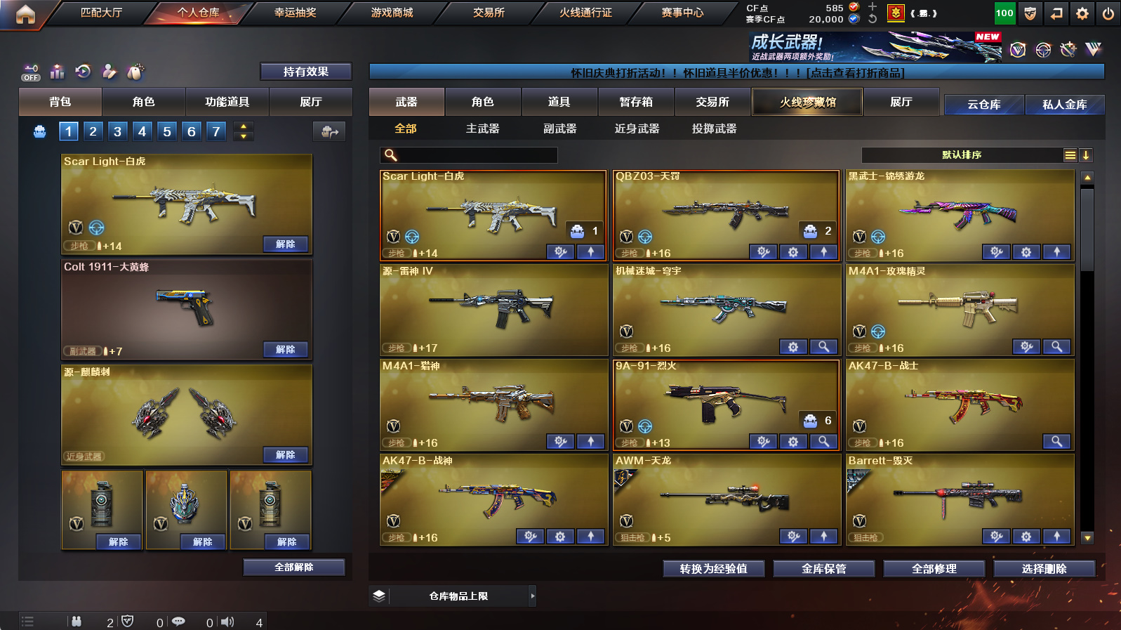 《王者之怒》《1911大黄蜂 cop旗袍》《白虎》《QBZ天罚》《m4猎神》《烈火》《毁灭》《火麒麟》《黑龙》《雷神》《黑骑士》《6炼狱 3烈龙 死亡之眼》《雷神精英刀锋》《金刚伞》《天罚音效卡 毁灭音效卡 黑骑士音效卡 火麒麟音效卡 雷神音效卡》《火麒麟s2018 毁灭s2020 火麒麟冠军之心 雷神s2019 天龙70kg》《永久AC 永久工具钳永久手雷包》;Scar Light-白虎,