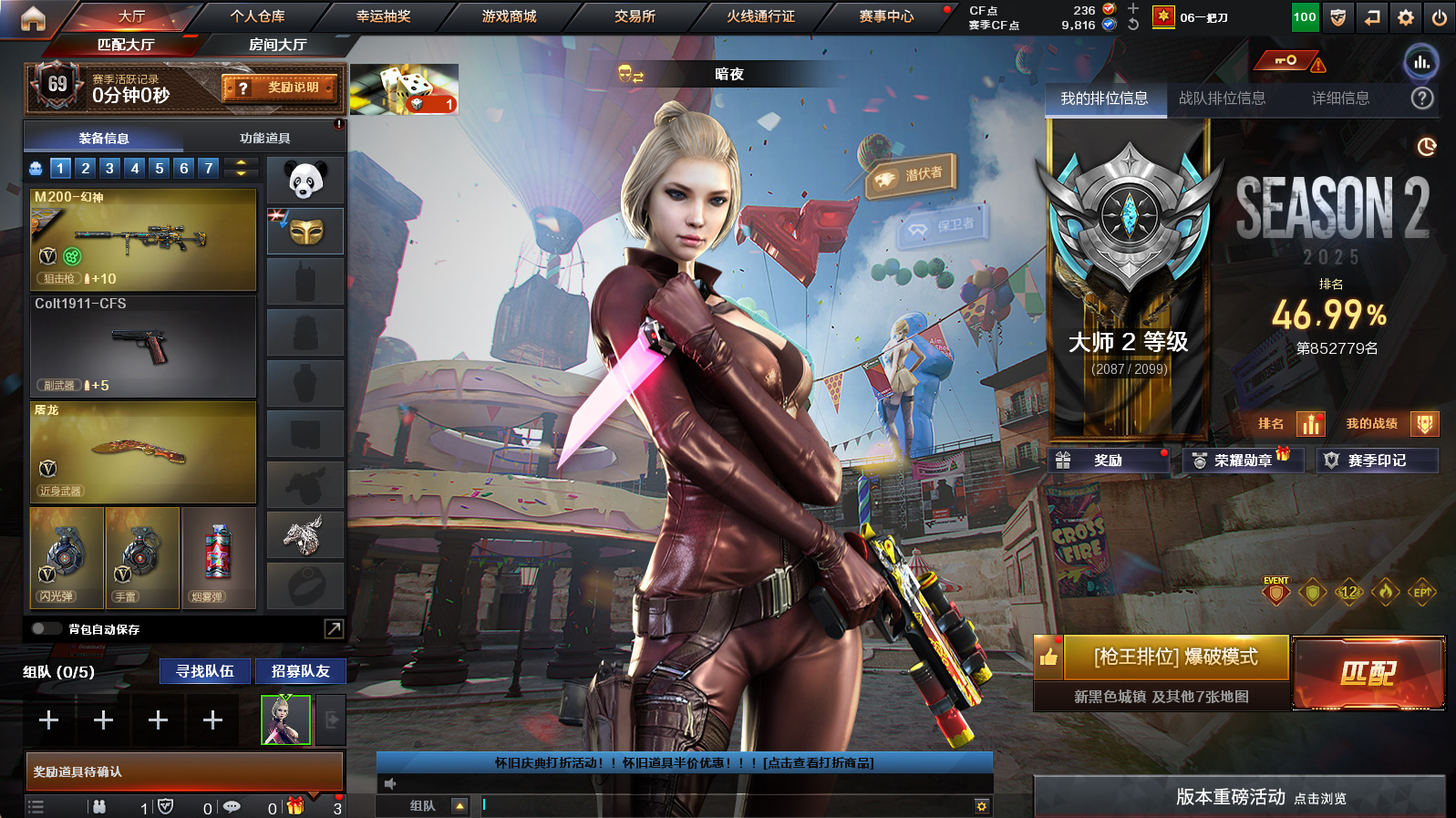 • 游戏区服:穿越火线 / 电信区 / 湖南一区