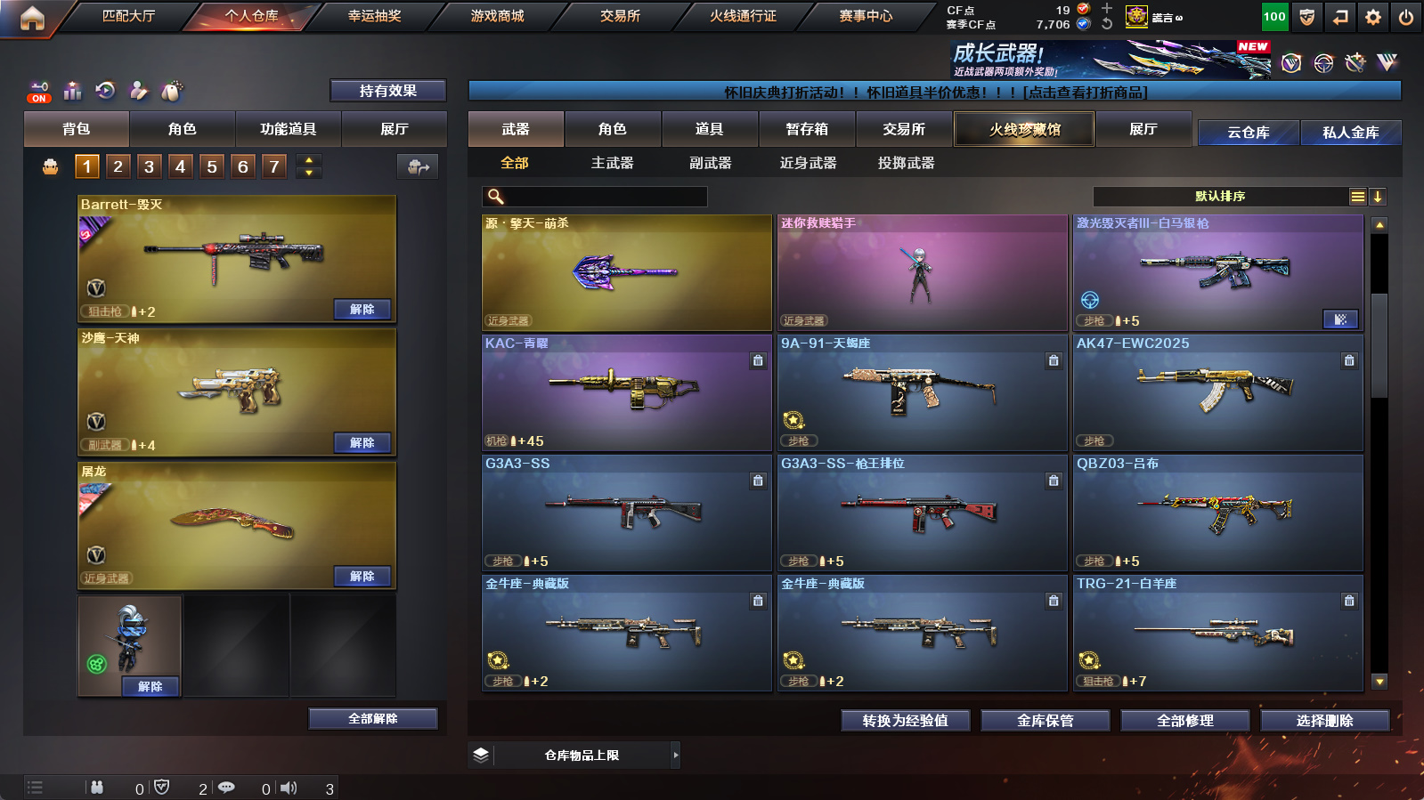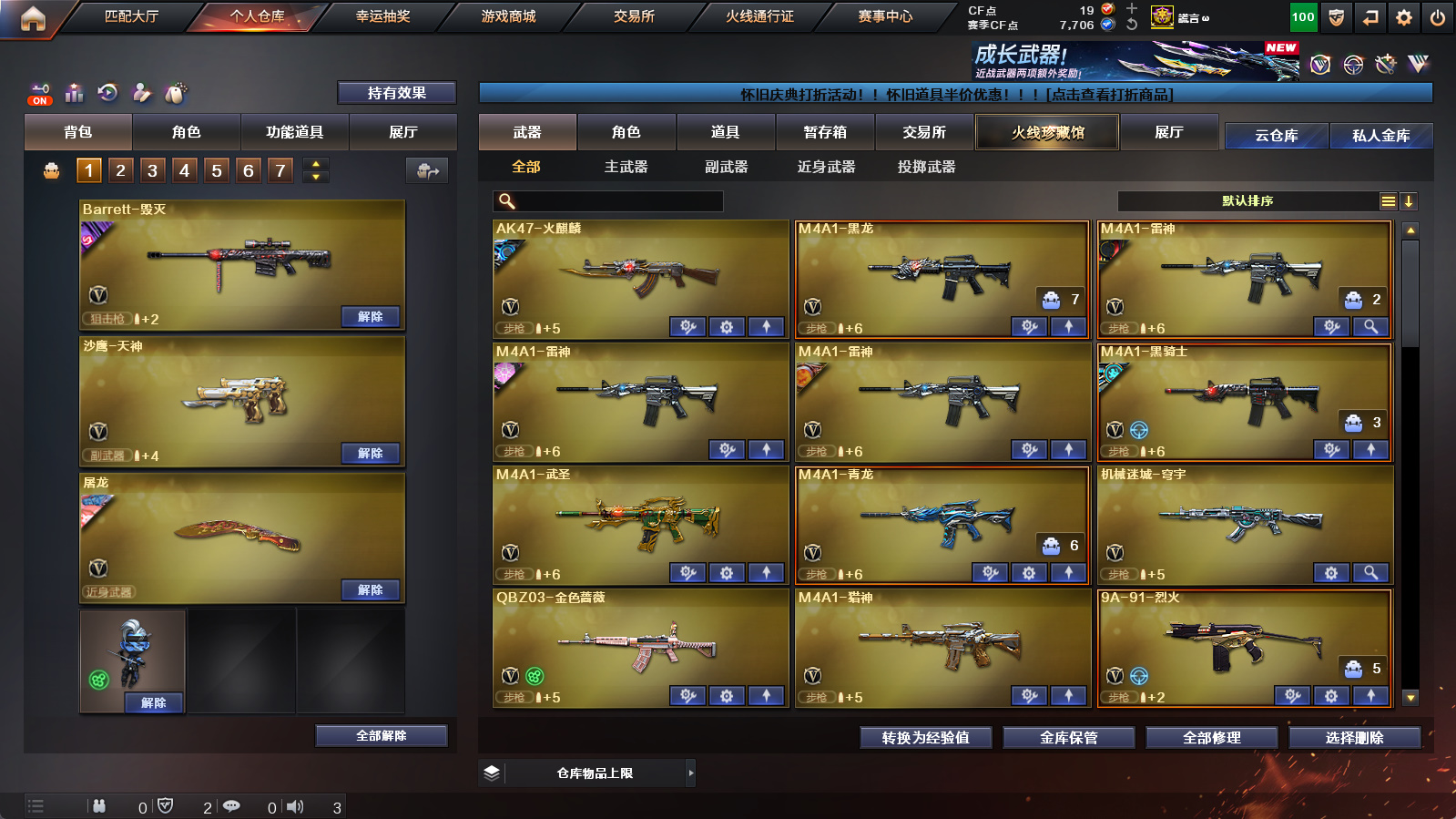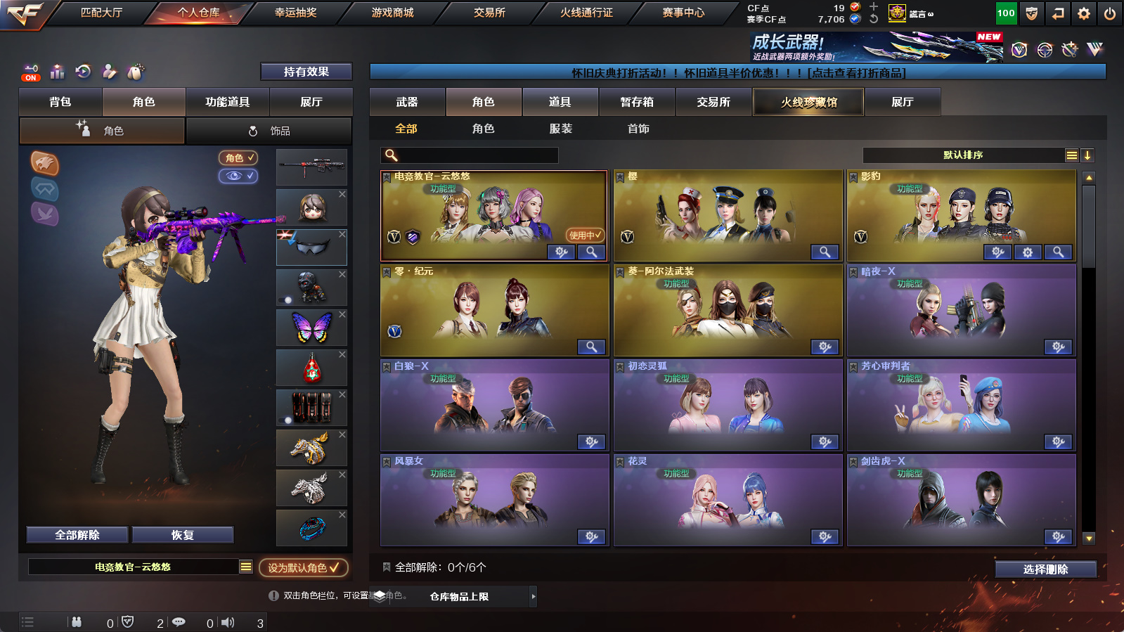 【AWM-裁决*2】【Barrett-毁灭+ 毁灭-青帝/毁灭-魔灵皮肤】【M200-竞技荣光】【觉醒王者之心】【沙鹰-天神/沙鹰-修罗*3/Glock18-武圣/柯尔特-竞技荣光】【麒麟刺/龙啸/王者之啸-觉醒版/擎天*2/擎天-竞技荣光/王者之击-觉醒版/屠龙】【M4A1-青龙/AK47-火麒麟 /M4A1-雷神*3/雷神-葫芦兄弟/QBZ03-金色蔷薇 /M4A1-黑龙/M4A1-黑骑士/M4A1-武圣/M4A1-猎神】【竞技荣光套装】【汤姆逊-烈龙*5】【樱/影豹/电竞教官-云悠悠/葵-阿尔法武装/零·纪元/初恋灵狐/潘多拉-N/王者零-传说之路】 【Barrett-碧霄极光音效卡/柯尔特-百战金芒-庆典舞曲音效卡/炼狱-百战金芒-庆典舞曲音效卡/麒麟刺-百战金芒-盛典舞曲音效卡】【雷神-荣耀世冠AG/雷神-宇航兔皮肤/雷神-暗月/黑骑士-伏羲/战神-粉色甜心皮肤/火麒麟-CFSTAR/AK47-B-常胜将军-刘备/AK47-B-常胜将军-曹操/屠龙-春桃 皮肤】《永久ac 永久工具钳 永久手雷包》;电竞教官-云悠悠,QBZ03-金色蔷薇,