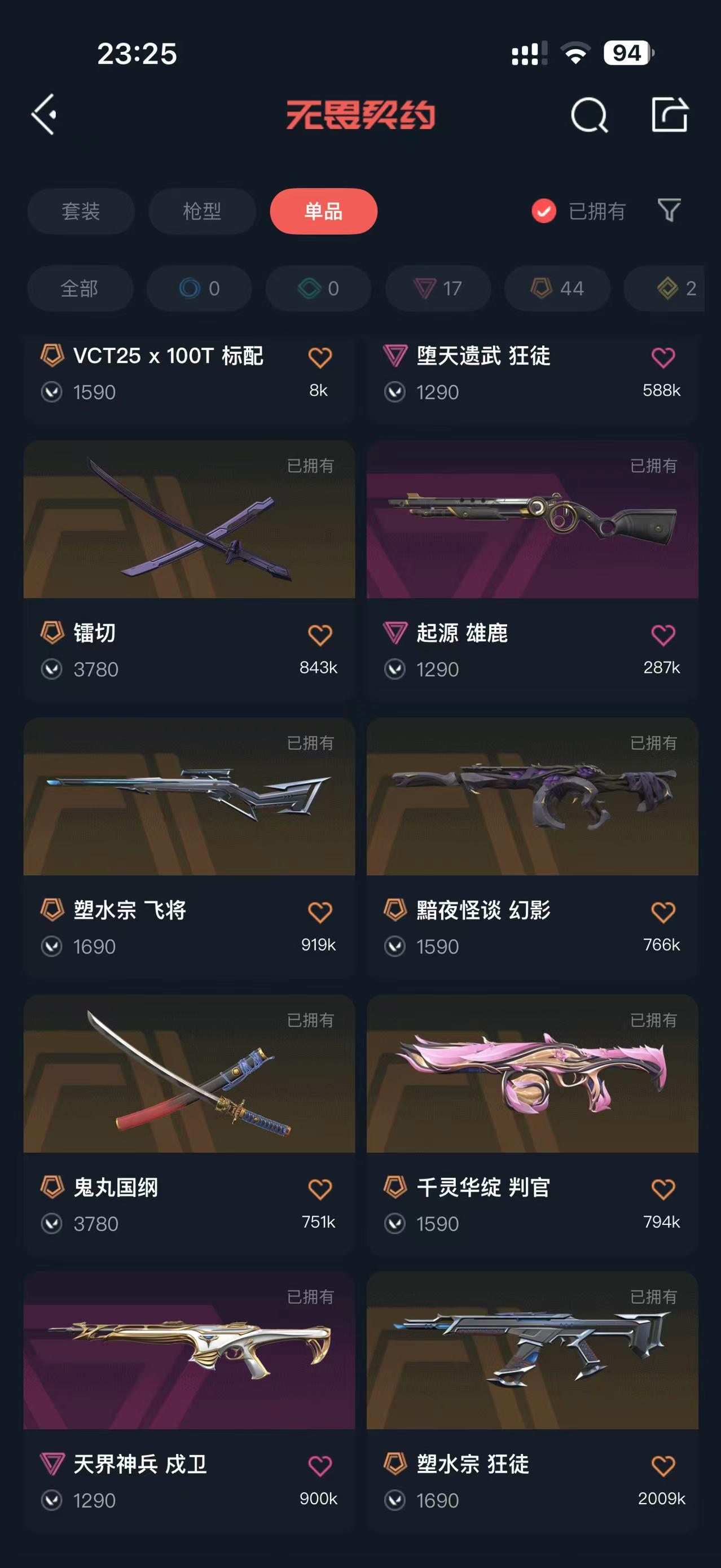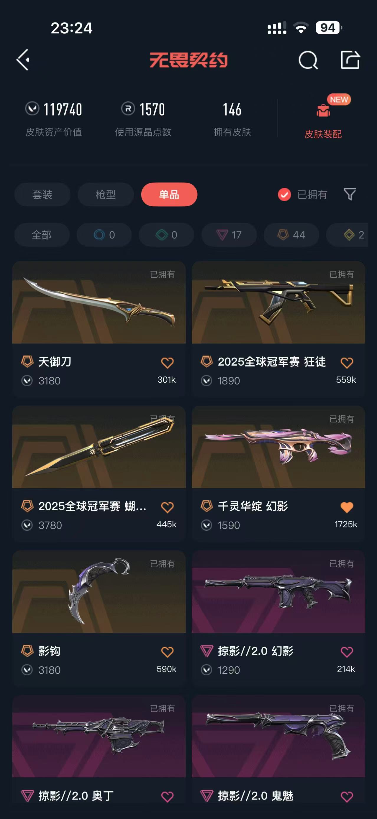 可排位,11瓦资产,剥皮小刀,天御刀,源始幻刃,镭切,奇点//2.0,影钩,落英飞旋,鬼丸国纲