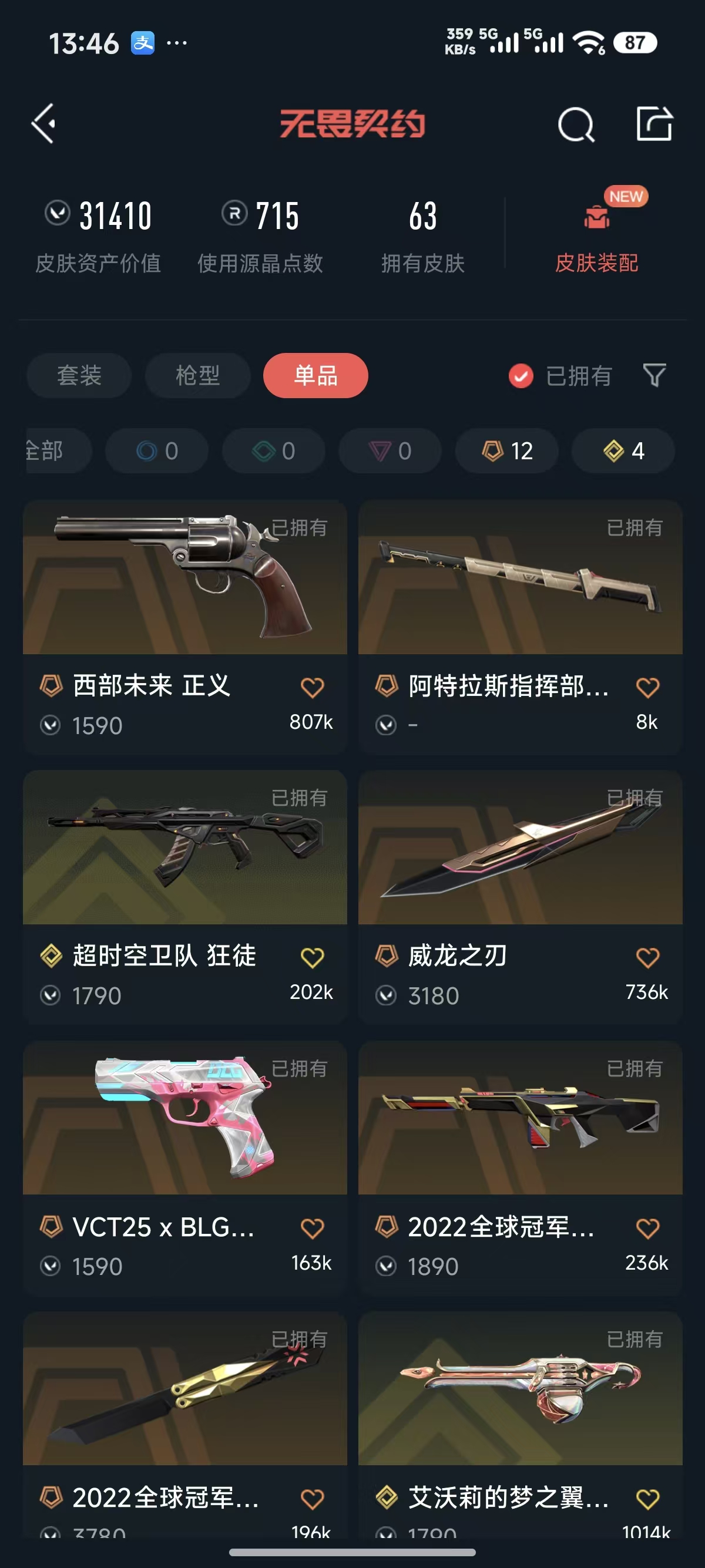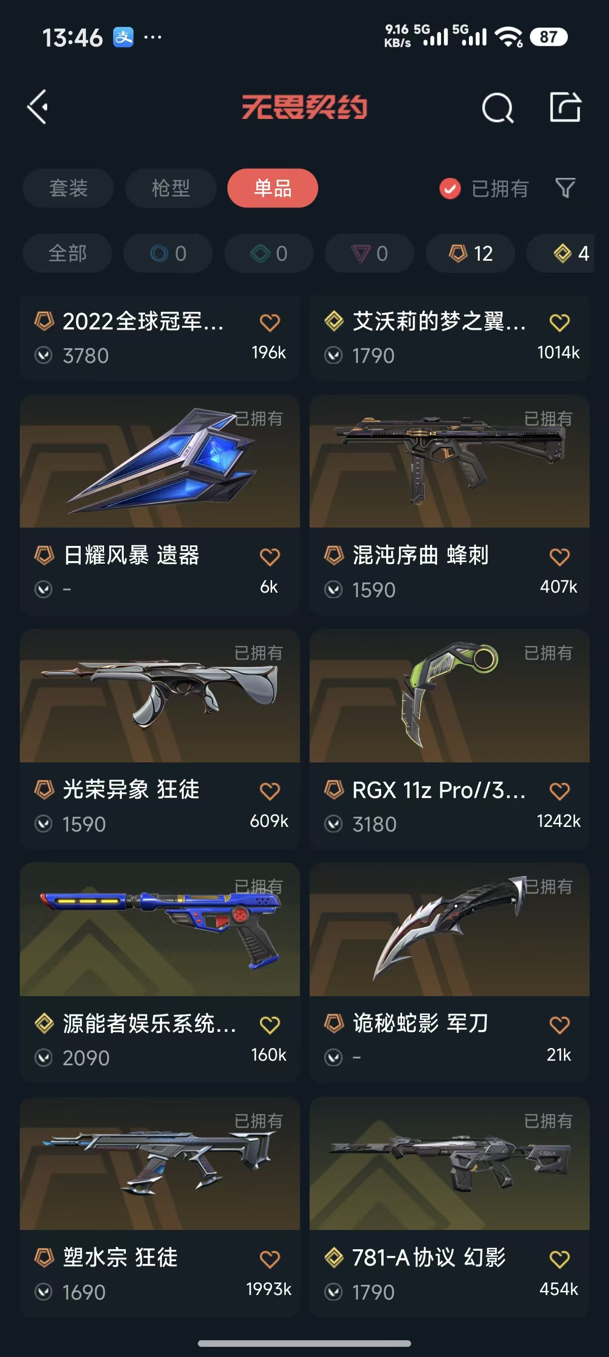 首页 > 租号大厅 > 无畏契约-wegame > wegame/wegame > 22冠军套装✨显卡爪刀✨威龙之刃✨塑水 光荣 超时空狂徒✨侦察 魔蛇 781幻影✨天界戍卫✨西部正义