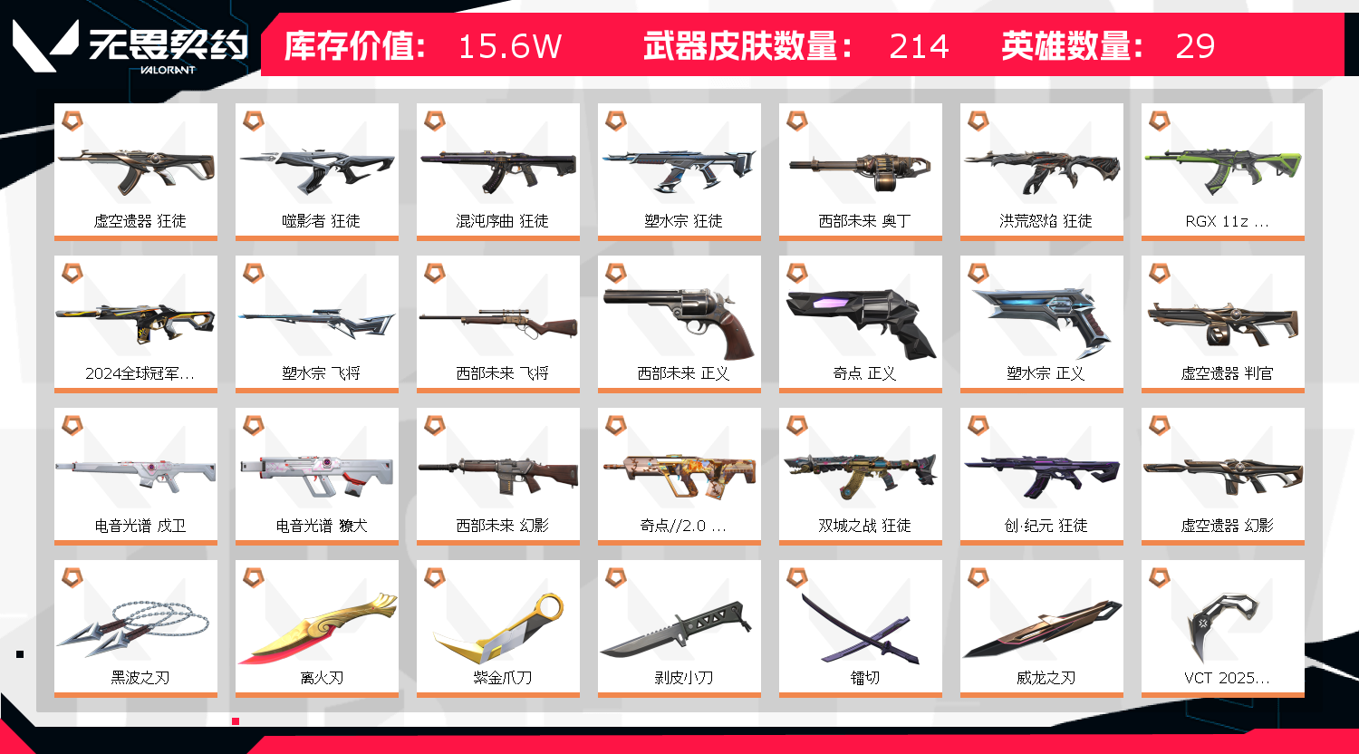 • 皮肤资产价值: 156030