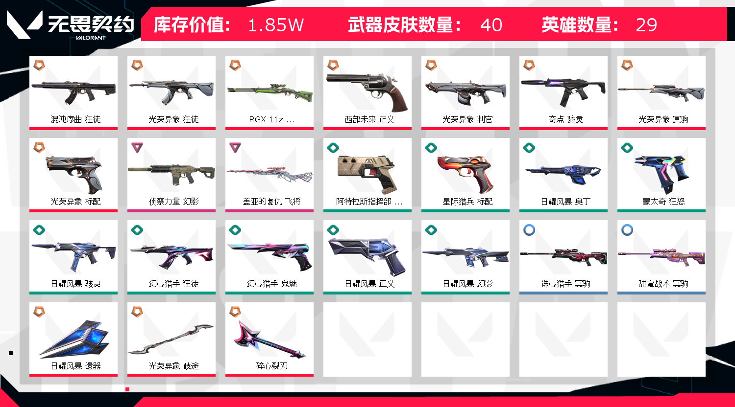 • 皮肤资产价值: 18480