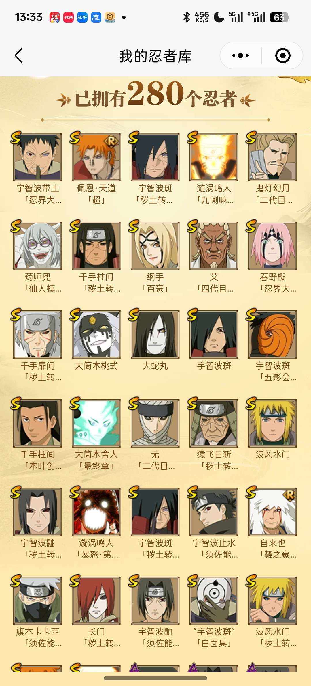32S✨62A ✨五影会谈斑✨天道超✨九喇嘛水门✨漂泊带土✨小胡子✨大筒木舍人✨须佐卡卡西✨六尾鸣人