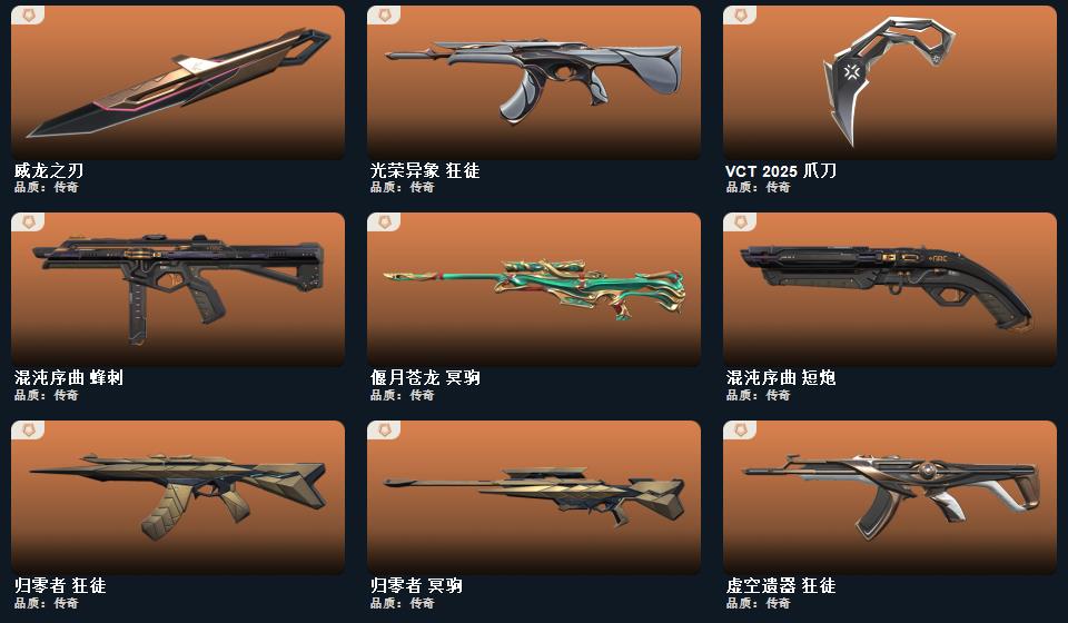 wegame无畏契约★ 刀皮数量18,枪皮数量163(绝版2限定36终极0卓越23);皮肤资产价值81940,近战武器-VCT2025爪刀,近战武器-闪耀之星荧