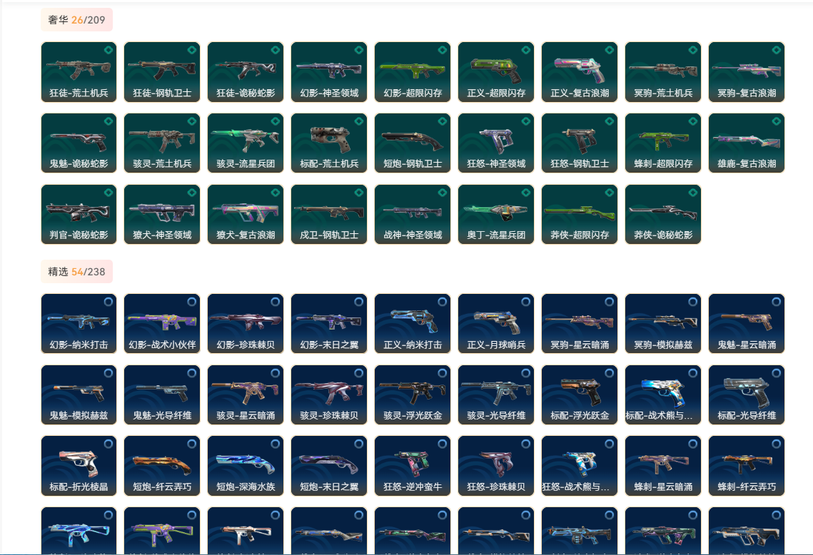wegame无畏契约★ 刀皮数量13,枪皮数量114(绝版2限定33终极4卓越10);皮肤资产价值76720,已用R点1360;【刀皮】:近战武器-VCT2025爪刀,近战武器-超限闪存匕首,近战武器-夜刃诡镰,近战武器-威龙之刃,近战武器-个人近战单位,近战武器-钢轨卫士战锤,近战武器-珍珠棘贝短剑,近战武器-落英飞旋,近战武器-荒土机兵热能刀,近战武器-诡秘蛇影军刀,近战武器-神圣领域战刀,近战武器-镭切,近战武器-