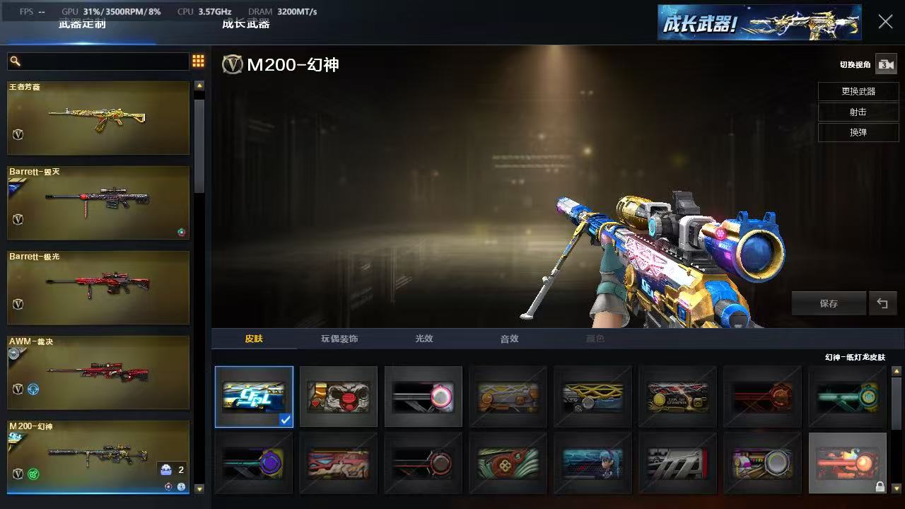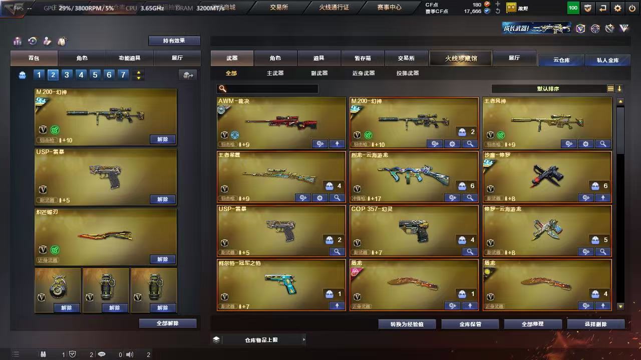 王者风神/王者雷霆/王者潘多拉/王者空/白虎/白鲨/热带皮肤/等;USP-雷暴,柯尔特-冠军之特,炽芒蝶刃,Knife-冠军之刃,QBZ03-金色蔷薇,M200-幻神,Scar Light-白虎,