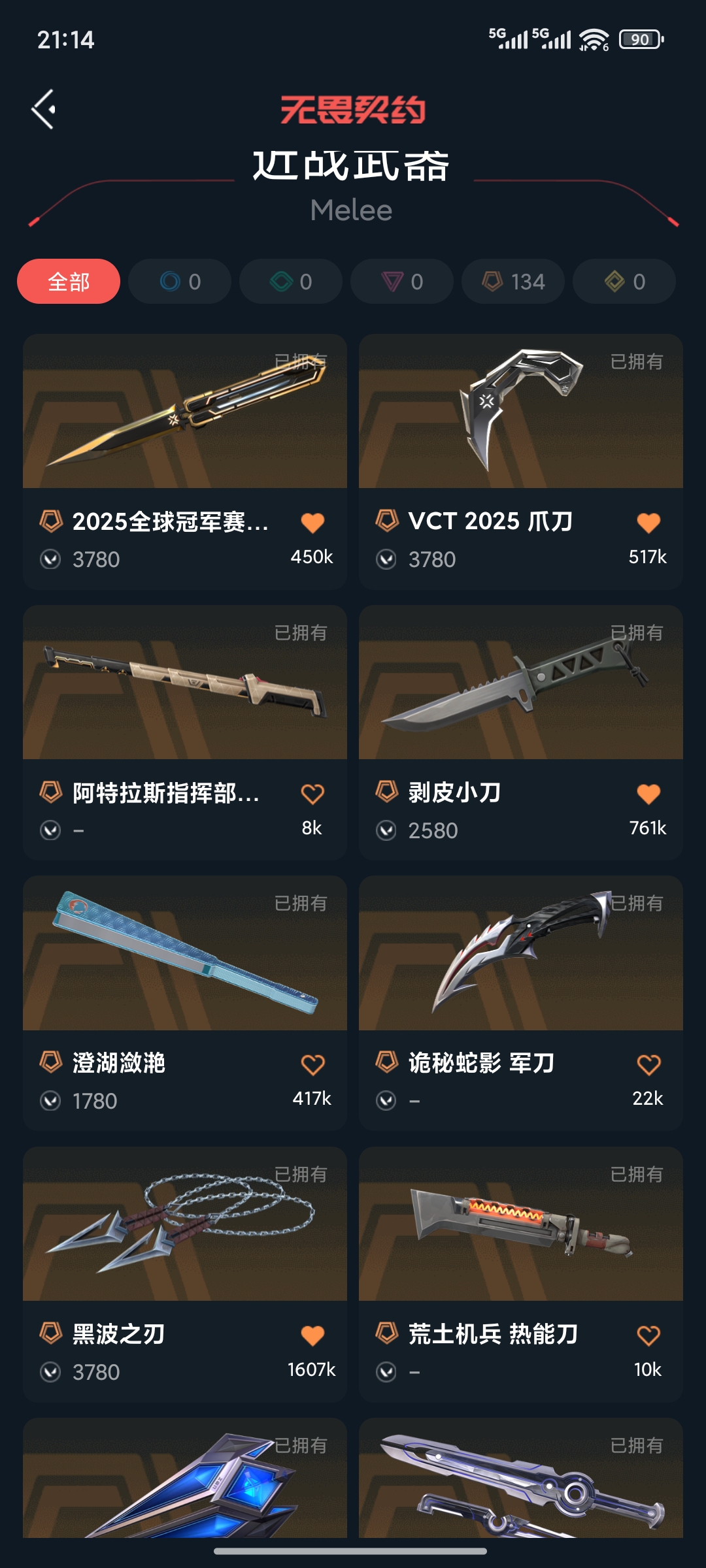 基本热门皮肤都有!!!;黑波之刃,剥皮小刀,VCT 2025 爪刀,盖亚的复仇 狂徒,掠影 戍卫,洪荒怒焰 狂徒,掠影 狂徒,