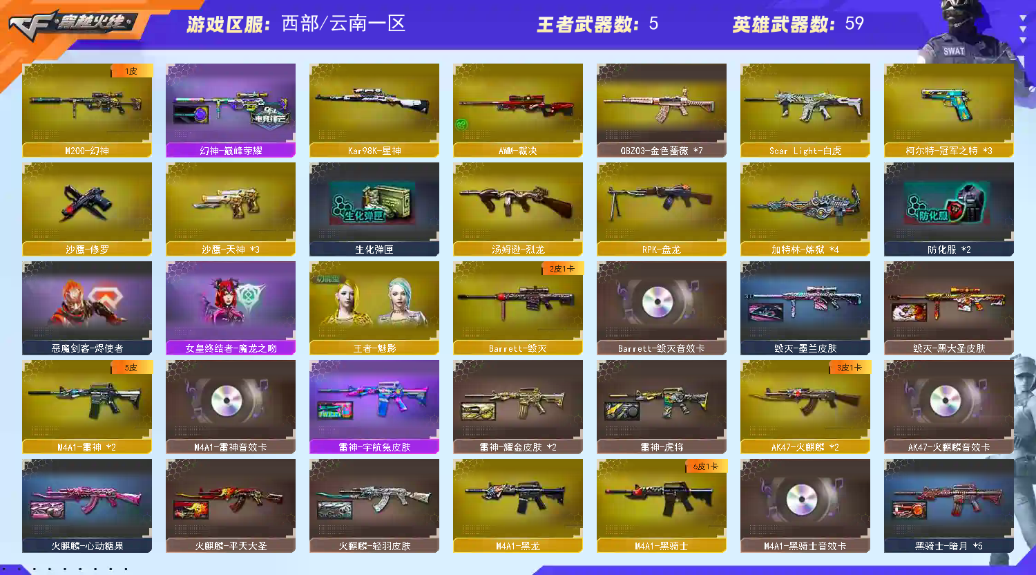 • 游戏区服:穿越火线 / 西部 / 云南一区