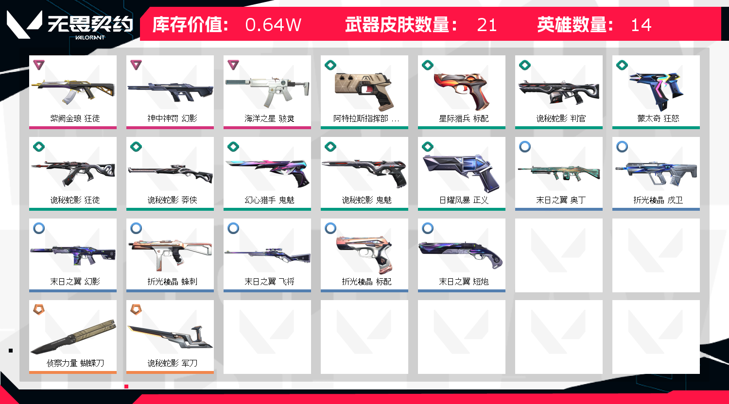 • 武器皮肤数量: 21