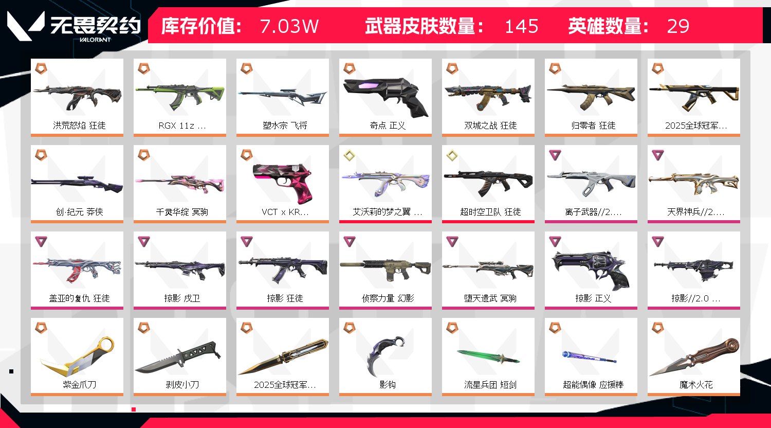 • 皮肤资产价值: 70320