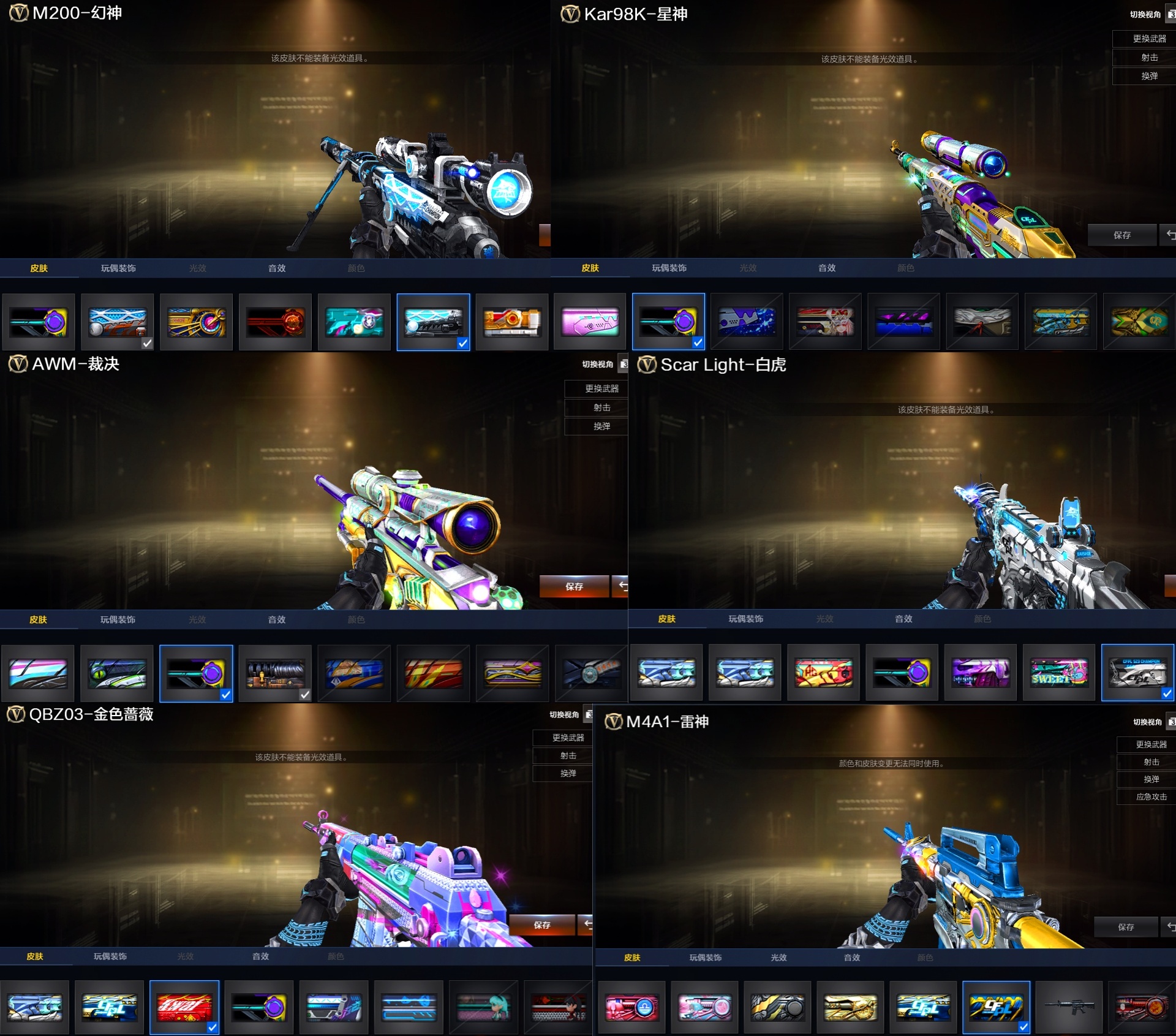 影煞幽瞳破晓幻影♥幻神音效卡7皮白沙AG星火♥裁决音效卡4皮巅峰流光♥白虎7皮蔷薇6皮泡泡象双全装