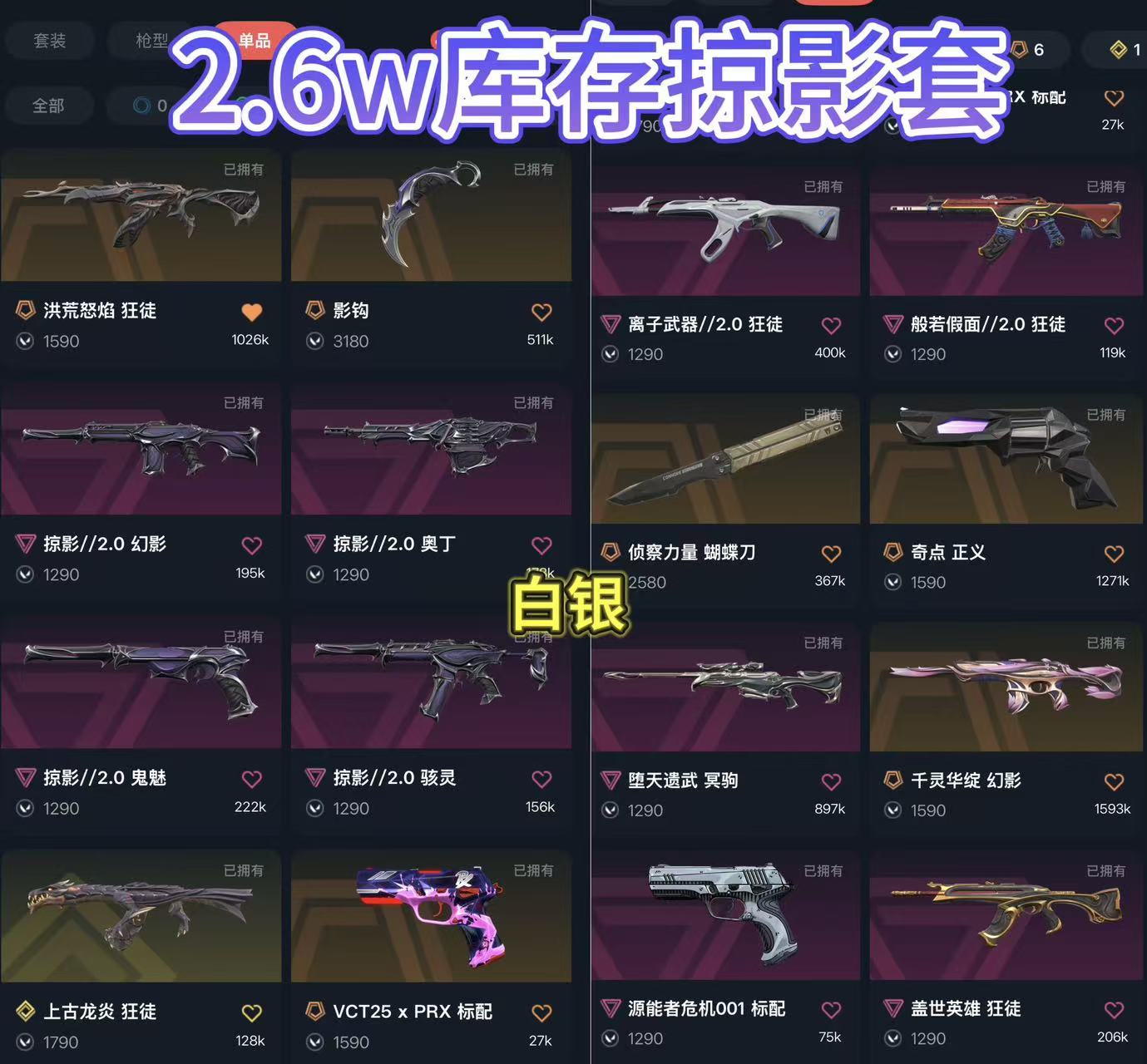 冻结秒解⚡3w 库存掠影套⚡侦察蝴蝶刀⚡流脓 猴子 离子 鬼面ak⚡莲花m4⚡起点正义;洪荒怒焰 狂徒,离子武器//2.0 狂徒,堕天遗武 冥驹,奇点 正义,