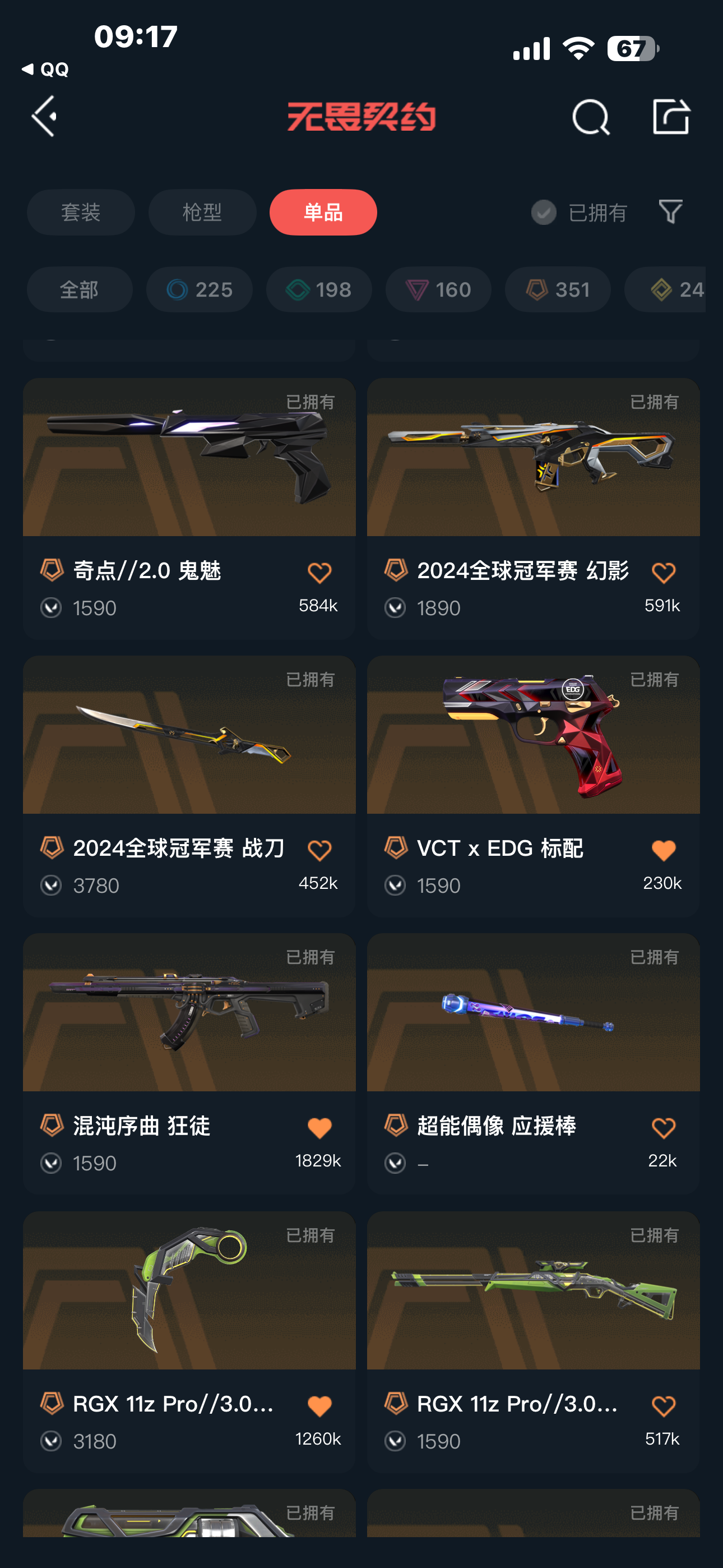 首页 > 租号大厅 > 无畏契约-wegame > wegame/wegame > 25年冠军AK/24年套装/22年套装/5周年定制版套装/显卡3.0套装/EDG、PRX标配等等
