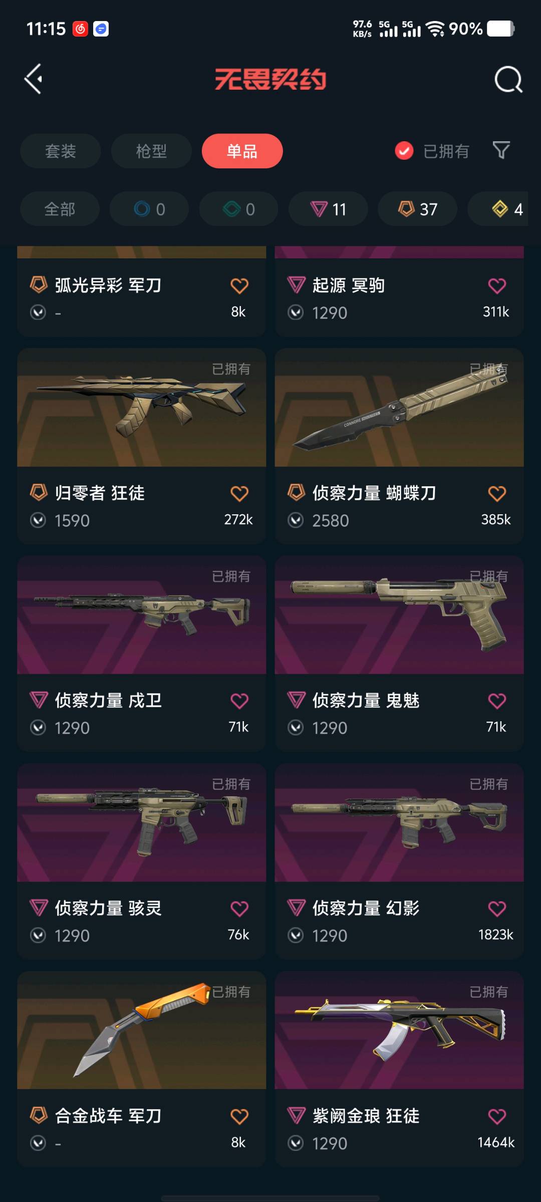 侦察力量套装、创纪元套装、西部未来套 装、噬影者套装 绝版皮肤 近战武器-双城之战拳套、狂徒-2025全 球冠军赛、狂徒-双城之战 近战武器 近战武器-合金战车军刀、近战武器-弧光异彩军刀、近战武器-侦察力量蝴蝶刀、近战武器-流星兵团短剑、近战武器-闪耀之星荧光棒、近战武器-显卡3.0爪刀、近战武器-荒土机兵热能刀、近战武器-双城之战拳套、近战武器-神圣领域战刀、近战武器-镭切、近战武器-未来开拓者、近战武器-噬影者簇刃、近战武器-阿特拉斯指挥部甩棍 鬼魅 鬼魅-数码咒术、鬼魅-信手涂鸦、鬼魅-侦察力量、鬼魅-噬影者、鬼魅-超时空卫队 正义 正义-传奇制造、正义-合金战车、正义-显卡3.0、正义-创纪元、正义-西部未来、正义-太空穿梭 标配 标配-超能冲撞、标配-彩梦之城、标配 阿特拉斯指挥部 短炮 短炮-弧光异彩、短炮-悠闲猫生 狂怒 狂怒-花漾粉红 2025VCT手枪 标配-VCT25xEDG 狂徒-紫阙金琅、狂徒-盖亚的复仇、狂 徒-归零者、狂徒-机动狂飙、狂徒-弧光;西部未来 奥丁,镭切,盖亚的复仇 狂徒,噬影者 狂徒,掠影 狂徒,侦察力量 幻影,洪荒怒焰 幻影,