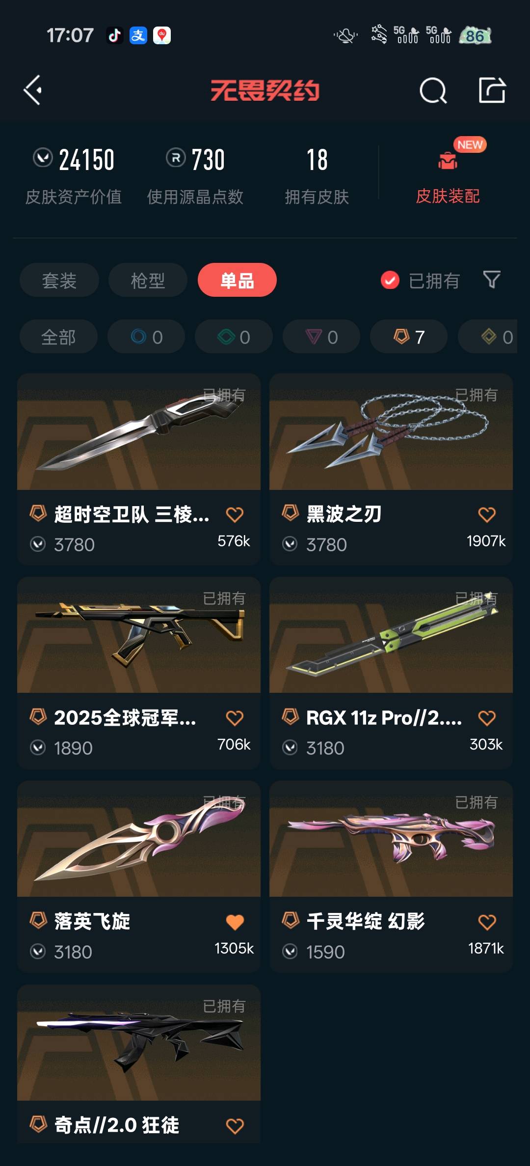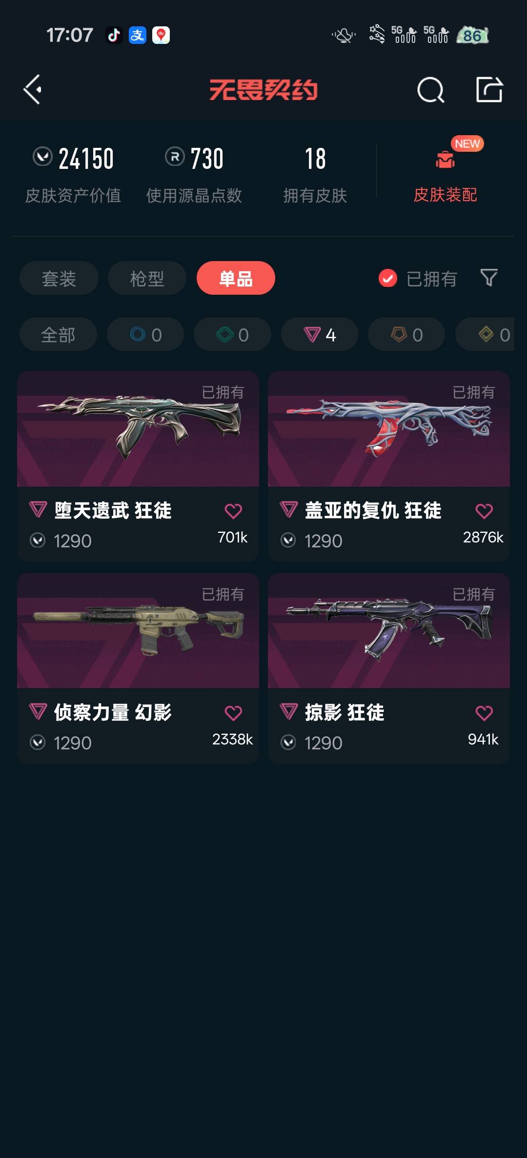 • 皮肤资产价值: 24150