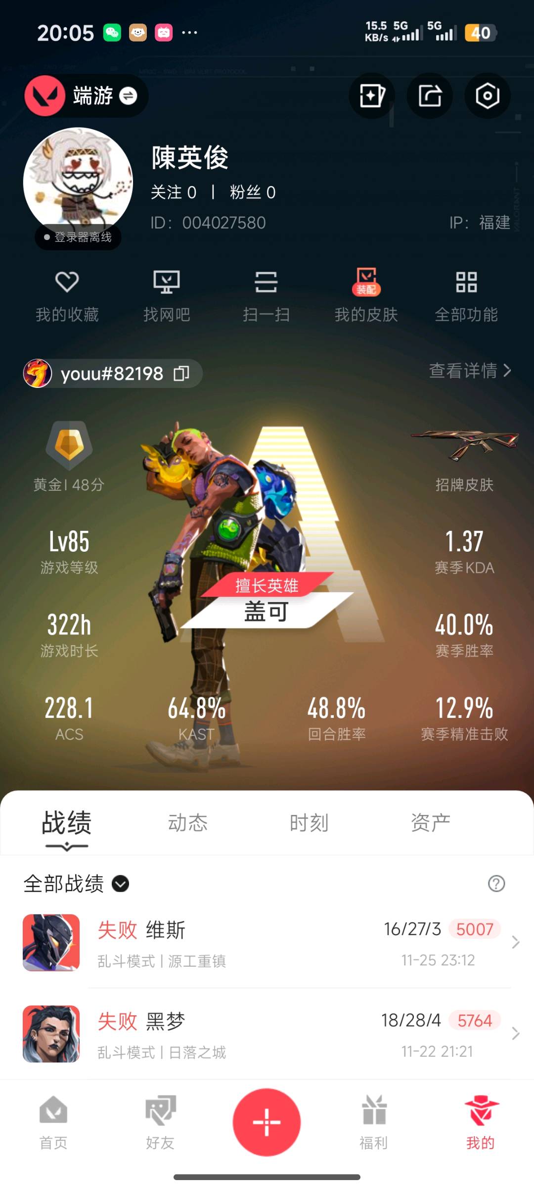 • 游戏区服:无畏契约-wegame / wegame / wegame