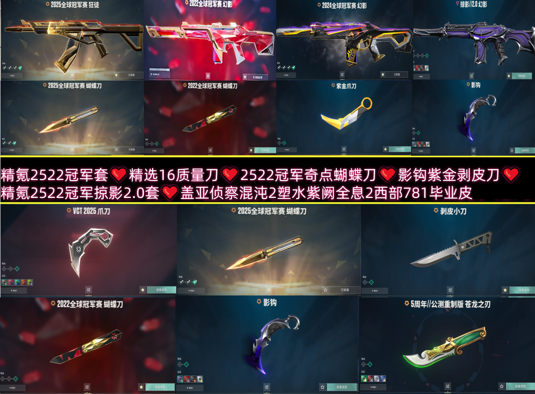 精氪252422冠军掠影全息2❤️精选19刀影钩紫金2522冠军蝴蝶刀混沌塑水盖亚侦察艾沃莉紫阙显卡
