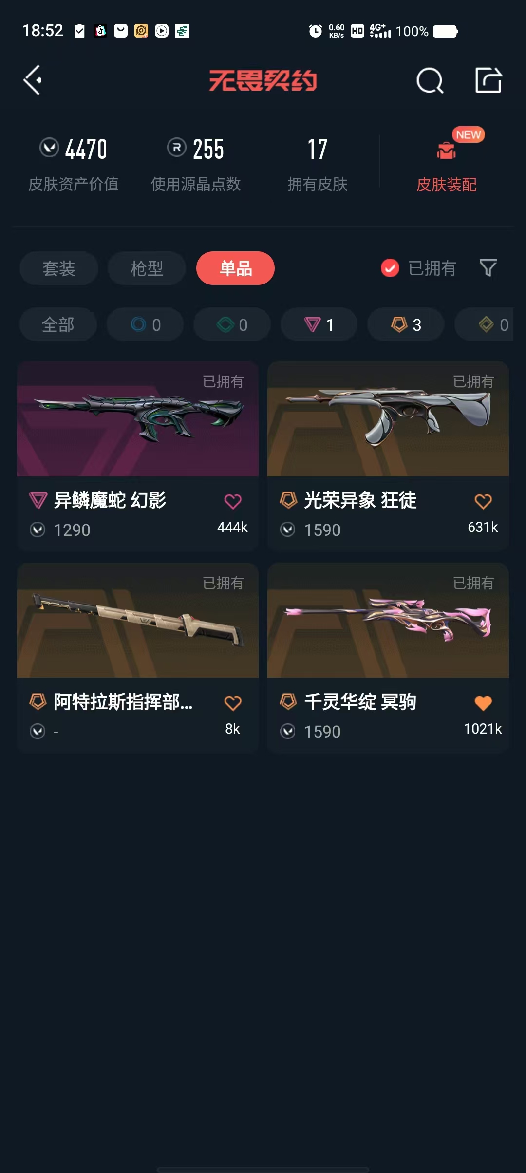 武器皮肤数量 17 英雄数量 18 卓越武器数量 1;异鳞魔蛇 幻影,光荣异象 狂徒,