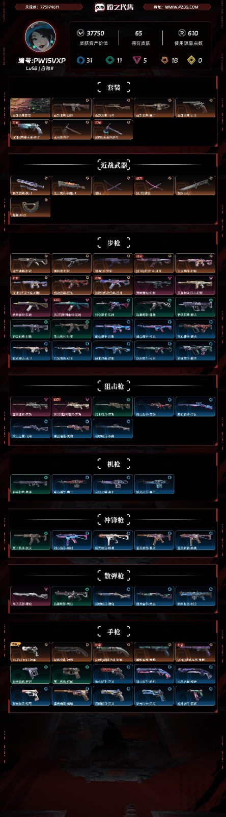 • 皮肤资产价值: 37750