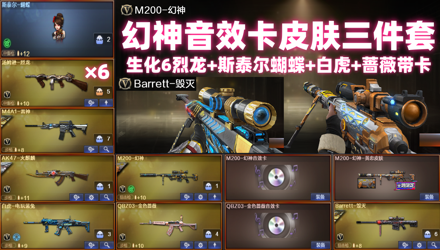 M200-幻神音效卡⚡黄忠皮肤三件套⚡金色蔷薇音效卡白虎毁灭雷神火麒麟✅生化6烈龙盘龙炼狱斯泰尔蝴蝶