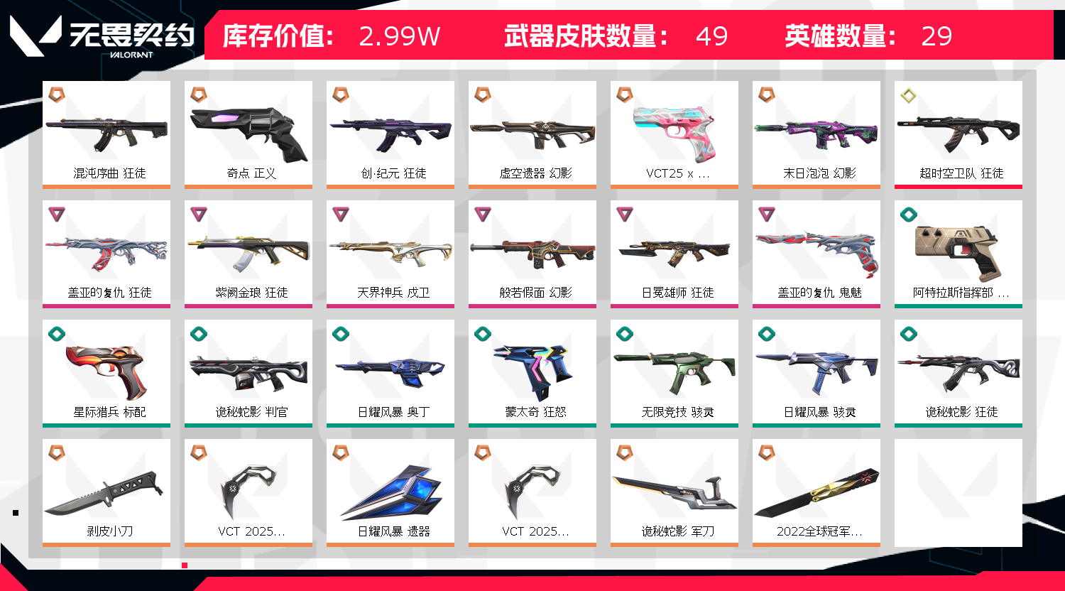 • 皮肤资产价值: 29900