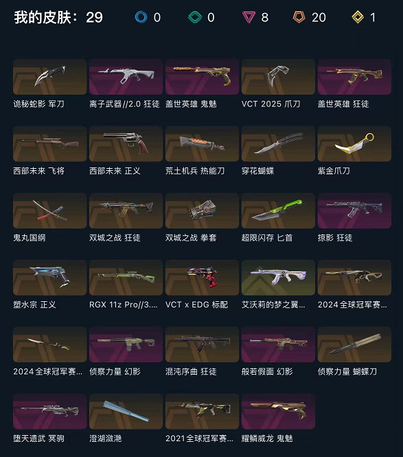 首页 > 租号大厅 > 无畏契约-wegame > wegame/wegame > 可排位特效全解锁混沌狂徒堕天大狙vct抓刀双城全套24冠军全套21冠军ak