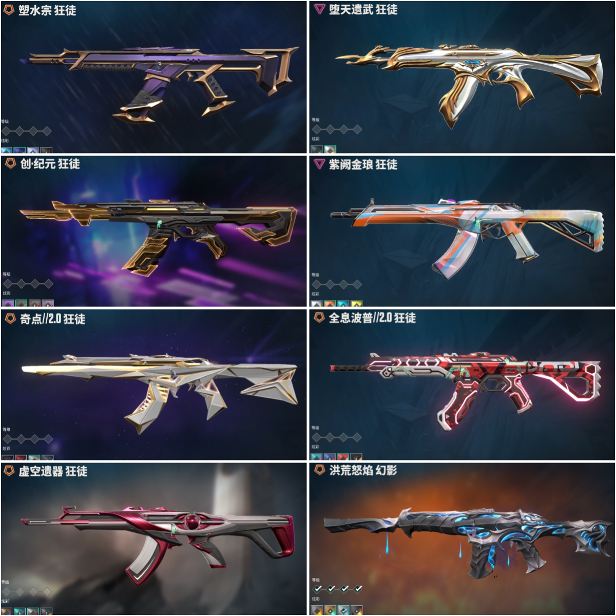 【拥有套装】创纪元套装(创·纪元-狂徒,创·纪元-莽侠,创·纪元-骇灵,创·纪元-正义,镭切)奇点2.0套装(奇点//2.0-狂徒,奇点//2.0-鬼魅,奇点//2.0-蝴蝶刀)2025全球冠军赛套装(2025全球冠军赛-狂徒,2025全球冠军赛-蝴蝶刀