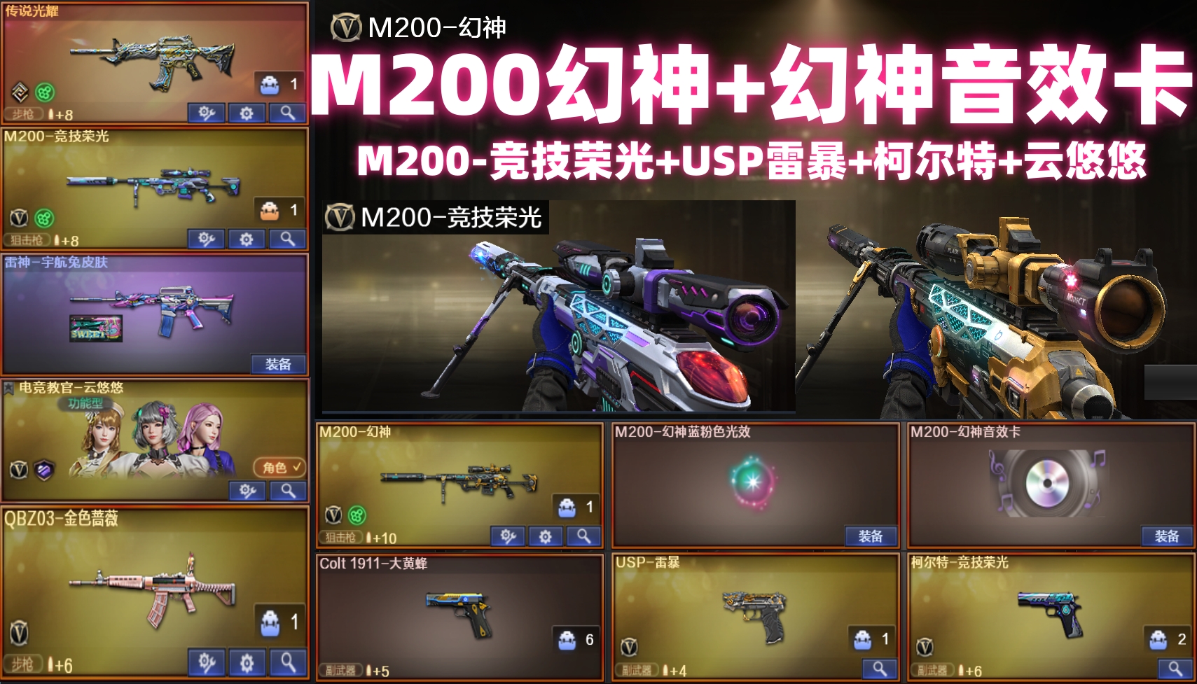 M200-幻神音效卡⚡幻神光效三件套M竞技荣光套USP雷暴⚡传说光耀金色蔷薇✅生化6盘6烈斯泰尔蝴蝶