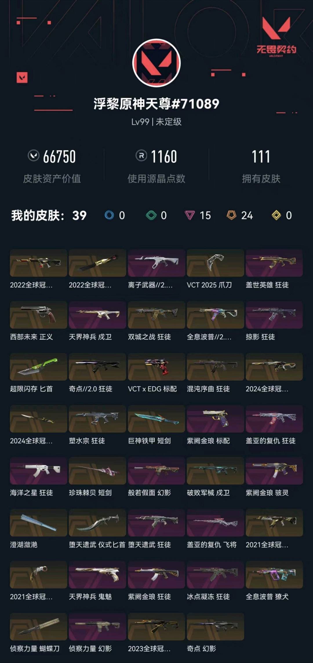 冻结请点击协助,会自动解冻,等几分钟重新登入即可! 请勿挂机,严🈲游戏中挂机拉黑!!! 账号R点请勿使用,本店铺及时补充新套装,若使用R点无法升级新套装,攒R点辛苦,望谅解! 老板不要杀太多,现在风控的严重,杀多了会临时冻结,到时候我可能不在无法解冻!使用外挂脚本导致游戏账号封禁直接向平台提取ip地址! 本账号经过网络财产备案,一经发现直接报警处理立案追责,根据账号价值全额赔偿感谢支持谢谢合作谢谢合作!!!!禁止利用账号进行开挂、使用辅助违规软件诈骗等违规操作!;VCT 2025 爪刀,盖亚的复仇 狂徒,掠影 狂徒,侦察力量 幻影,紫阙金琅 狂徒,天界神兵 戍卫,堕天遗武 狂徒,