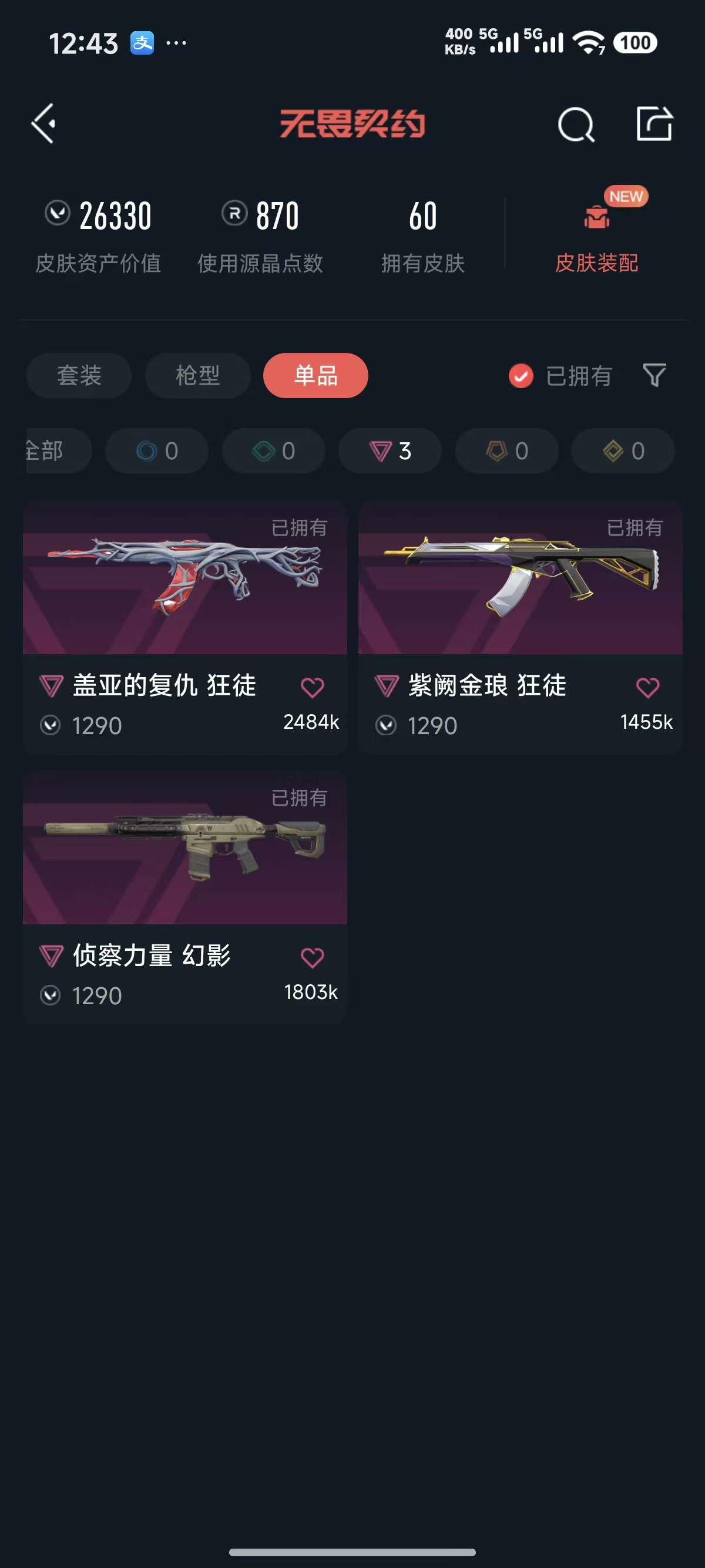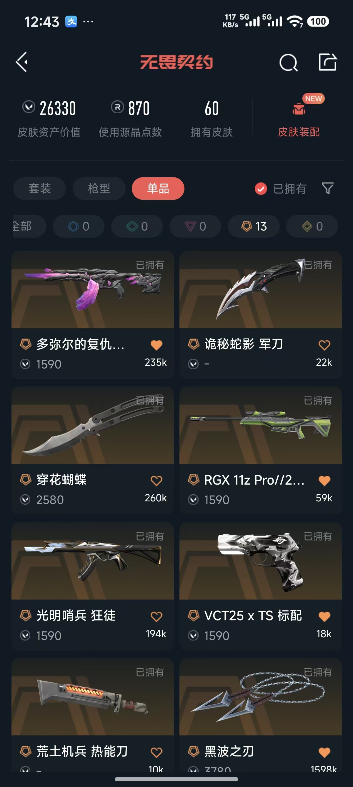 • 皮肤资产价值: 26330