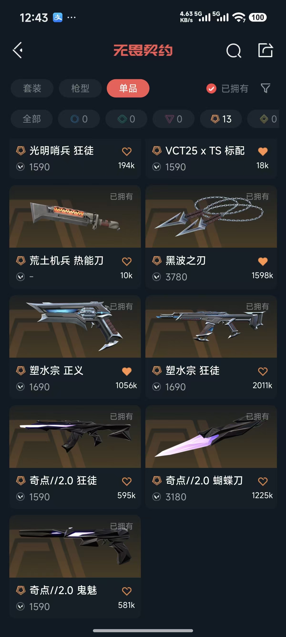 首页 > 租号大厅 > 无畏契约-wegame > wegame/wegame > 黑波✨奇点 黑市蝴蝶刀✨塑水 盖亚 紫金 石头 哨兵 奇点狂徒✨侦察幻影✨奇点鬼魅✨塑水正义