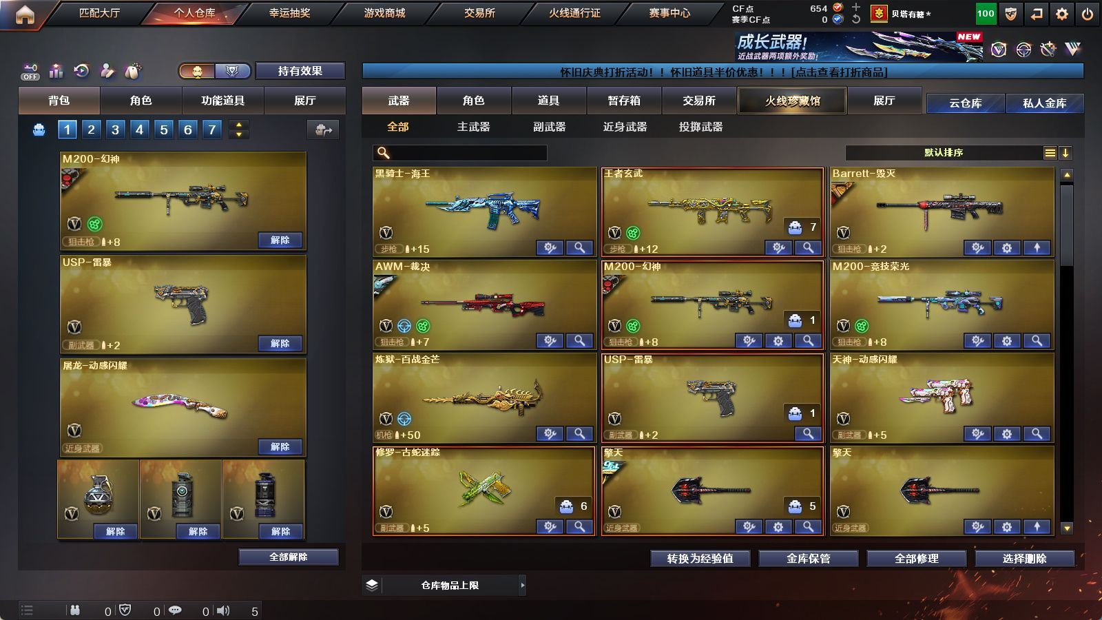 《幻神+荣耀世冠白鲨+N9》《M200竞技荣光》《毁灭 裁决》《白虎》《qbz金色蔷薇 火麒麟 雷神 黑骑士 qbz独角》《王者玄武》《usp雷暴》《魅影 零纪元 葵阿尔法武装 乔伊教练 蛇隐宗 王者零华冠丽服》《黑骑士音效卡》《裁决叶芒苍灵 雷神18冠军 黑骑士冠军之势 qbz荣耀世冠白鲨 雷神荣耀之魄 火麒麟CFSTAR》;USP-雷暴,QBZ03-金色蔷薇,M200-幻神,Scar Light-白虎,