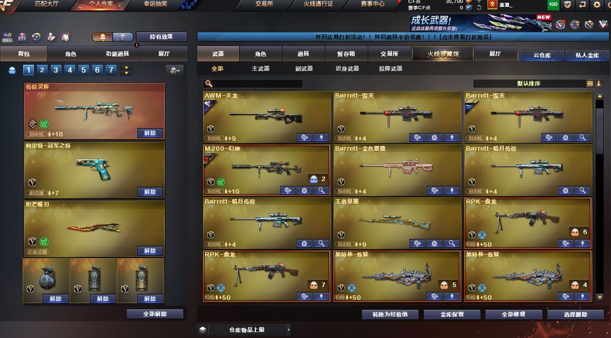 【传说影煞】【传说灵眸/传说破晓】【M200-幻神+幻神-电流骇客皮肤+M200-幻神-N9-2022MVP】【Scar Light-白虎/白虎-电玩蓝图】【G36C-幻影】【QBZ03-金色蔷薇】【王者之击-觉醒版】【COP 357-云龙/沙鹰-天神(2)/天神-CF网剧冠军/沙鹰-修罗(4)/柯尔特-冠军之特/USP-雷暴】【擎天/擎天-CF网剧冠军/云龙扇/屠龙/雷霆之锋/斩神刀-雷暴/炽芒蝶刃(2)】【雷暴套装】【2盘龙/2烈龙/3炼狱】【斯泰尔-蝴蝶】【青龙之魄/凤吟之魄/王者星霆】【零/关小雨/晴雅/雅典娜/奇洋探员/灵动武士/流浪蔷薇/灵狐者-黄金海岸/暗黑审判】【Kar98K-星神音效卡/M4A1-雷神音效卡/M4A1-黑骑士音效卡/AK47-火麒麟音效卡/Barrett-毁灭音效卡】【巴雷特-毁灭-CFPL冠军/毁灭-枪娘巴雷特/AWM-天龙-传奇70KG/火麒麟-CFSTAR/AK47-B-常胜将军-刘备/AK47-B-常胜将军-孙权/AK47-B-常胜将军-曹操/AK-47-雷神/雷神-冠军之魄/雷神-宠儿-2019MVP/雷神-耀金皮肤/雷神-星空/战神-流金岁月皮肤/战神-紫绶金章皮肤/战神-粉色甜心皮肤/加特林-炼狱-钟馗皮肤/修罗-冠军之魂/屠龙-荣耀之锋/屠龙-星火燎原/黑鲨-电流骇客皮肤/超新星-热带奇洋/龙啸-热带奇洋】【Barrett-毁灭(2)/barrett-金色蔷薇/Barrett-暗月传说(2)/AWM-天龙/M4A1-雷神(2)/M4A1-黑龙/M4A1-黑骑士/HK417-朱雀/M14EBR-玄武/AK47-火麒麟/AK47-雷暴/AK47-黑鲨(3)/AK-47-猩红传说(7)/AK47-机械迷城/AK47-B-战士/AK47-B-战神(2)/AN94-超新星/9A91-烈火/AA-12-雷霆(2)/黑武士-锦绣游龙】;USP-雷暴,柯尔特-冠军之特,炽芒蝶刃,传说影煞,晴雅,RPK-盘龙,QBZ03-金色蔷薇,