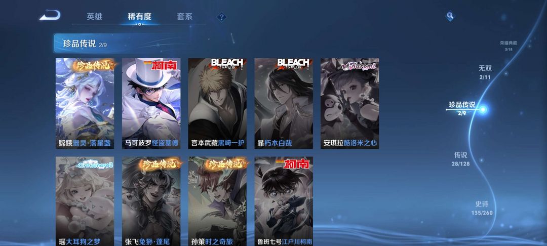 无双贵族V10/731皮/8典藏/满无双传说/神罪/诡秘之主/天机白泽/馥梦繁花/螭龙剑/碎月剑心/怪盗基德/无限飓风号/拾光映像/至尊宝/撤单拉黑秒顶号!