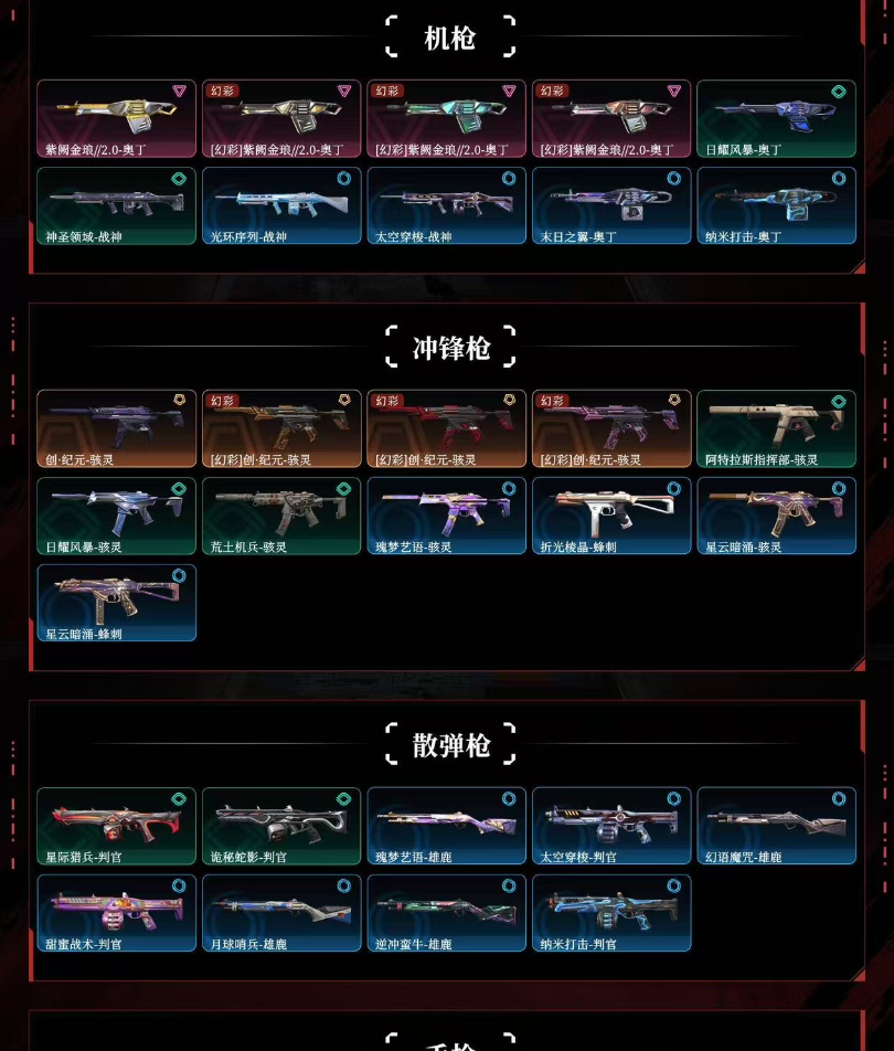 满炫彩虚空套♥奇幻朋克3.0套♥鬼丸剥皮刀♥天界戍卫♥班若幻影♥雄狮狂徒♥盖世大狙西部未来正义