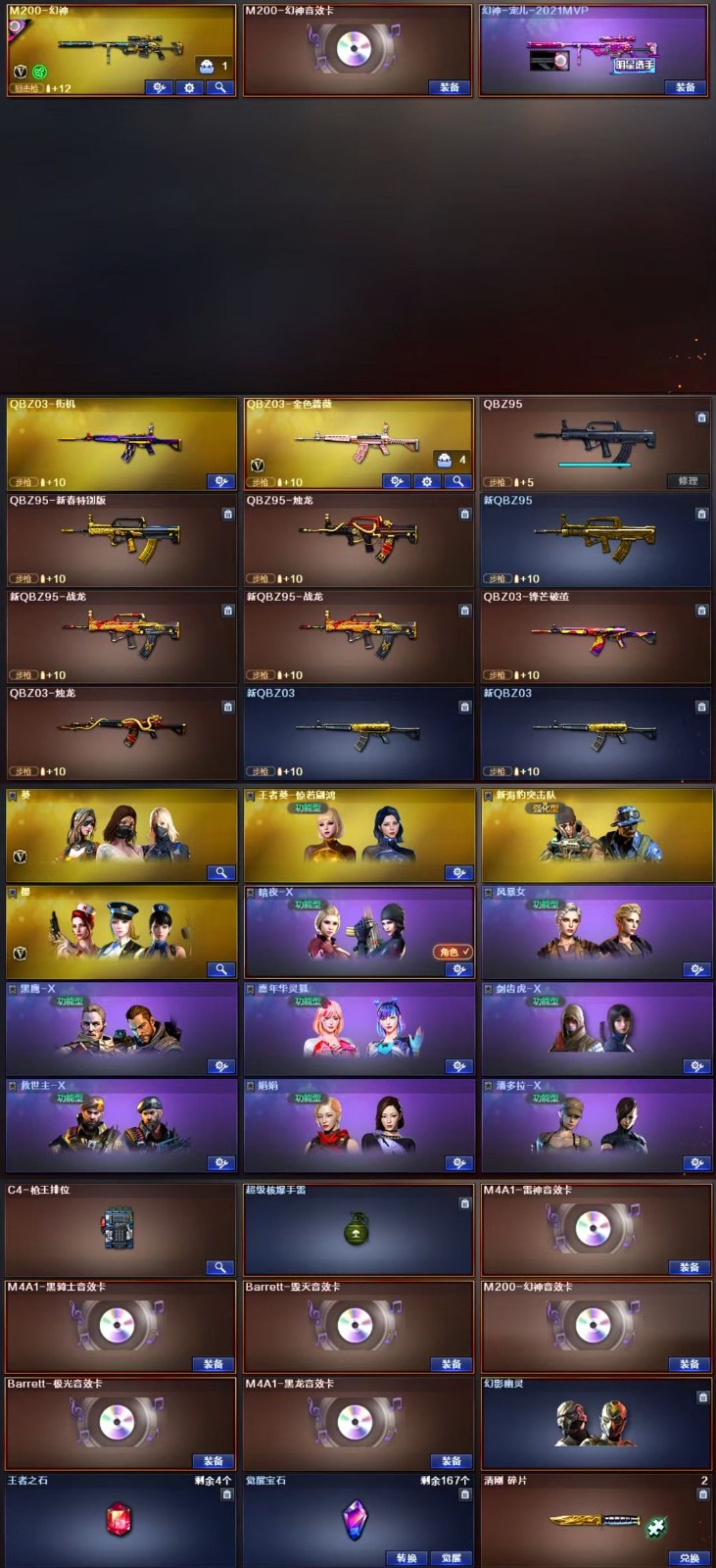 >>>>>>毁号,涉及毁坏虚拟财产罪及计算机安全罪,请文明游戏素质游戏,让我们共建美好租号平台>>>>>> 主武器、副武器、近身武器够用 拥有完美游戏体验。重要的是,特殊装备有:M4A1-玫瑰精灵、麒麟刺、M200-幻神、HK417-朱雀、加特林-炼狱、AK47-火麒麟、王者之锋-觉醒版、炫金毁灭、炫金天龙、炫金骑士、王者之魄闪光弹、王者之魄高爆手雷、王者之势-觉醒版、王者之锋、王者冰魄-觉醒版、王者之影、炫金天神、火麒麟-暗月、雪莉杨、堕天使、王者之魄金色光效、M4A1-黑骑士音效卡、生化弹匣、等,随意畅选。 注意事项: A.游戏过程中请不要恶意挂机或者不文明发言 B.恶意挂机、顶号等行为将被拉黑无法再次下单 C.进入游戏后中途请勿退出登陆,否则无法再次上号 D.部分账号由于异地登录可能会出现密码错误提示,通常再尝试5-6次后可上号 |||||||||喜欢本账号请点 ☆收藏☆ 方便下次租用,谢谢光临惠顾|||||||||;RPK-盘龙,QBZ03-金色蔷薇,M200-幻神,
