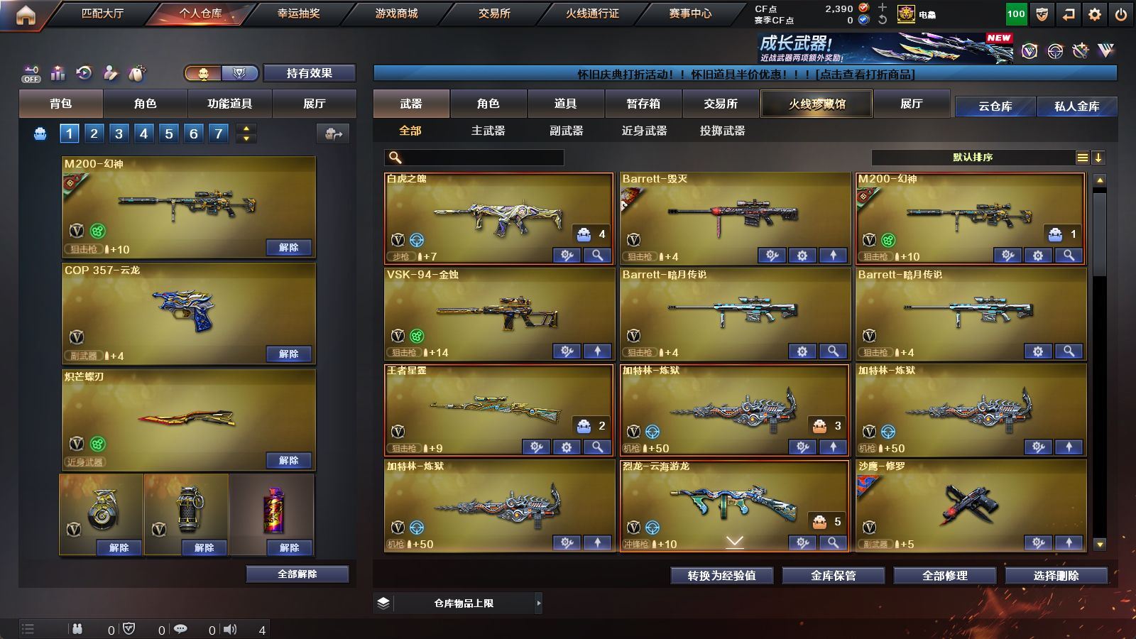 m200幻神+黄忠+降龙》《王者星霆》《vsk金蚀》《usp神工天巧 cop云龙 1911大黄蜂》《炽芒碟刃》《白虎之魄》《白虎电玩蓝 兔》《朱雀》《qbz天罚》《qbz金色蔷薇》《毁灭》《火麒麟》《雷神》《黑骑士》《黑龙》《集束激光超越max 双面神 毒蜂 异变清道夫 aa12擎天柱 试炼破坏者》《雷神精英刀锋》《关小雨 华 雨墨 奇洋探员满配 乔伊教练满配 王者瞳闭月羞花 4防王者沙漠玫瑰 云海玲珑满配 暗夜审判》《超级背包》《雷神音效卡》《白虎热带奇洋 雷神脉冲核心 m4战神赵云 雷神冠军之魄》《a背包套装扩展券》;炽芒蝶刃,王者沙漠玫瑰,QBZ03-金色蔷薇,M200-幻神,