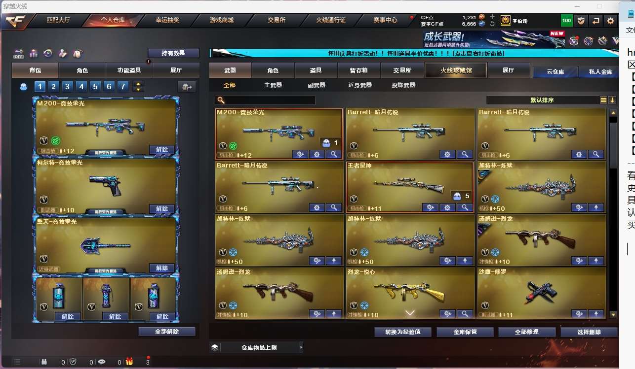【m200竞技荣光套+usp雷暴+云悠悠】【王者星神】【白虎电玩蓝兔】【qbz金色蔷薇】【火麒麟】【黑龙】【雷神+卡】【黑骑士+卡】【毁灭+卡】【极光】【裁决】【雷暴套】 【武器:武圣 雷暴 王者之影 王者之翼 王者之势 王者之幻 雷霆王者 天龙 炼狱*3 烈龙*3】 【11手呛:修罗*4 天神 武圣 雷暴 幻灵 竞技荣光 荣耀世冠柯尔特 雷霆王者*2】 【13刀具:屠龙*5 龙啸 擎天*3 麒麟刺 斩神刀雷暴 竞技荣光 王者之击 】 【6雷套:雷暴雷*5 竞技荣光 】 【小人呛:斯太尔蝴蝶 雷神精英刀锋 】 【音效卡:黑骑士音效卡 毁灭音效卡 雷神音效卡 】 【四防角色:王者涂鸦】;USP-雷暴,荣耀世冠-柯尔特,电竞教官-云悠悠,QBZ03-金色蔷薇,