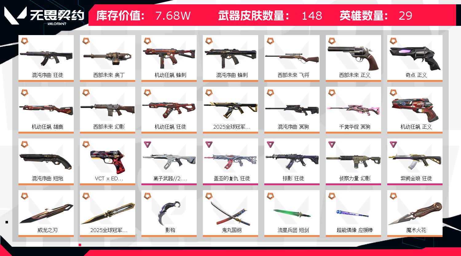 首页 > 租号大厅 > 无畏契约-wegame > wegame/wegame > 精氪神中神25冠军五套装✨RGX显卡爪✨影钩✨魔术火花精威龙刃鬼丸✨特效拉满✨盖亚混沌塑水✨侦查力量