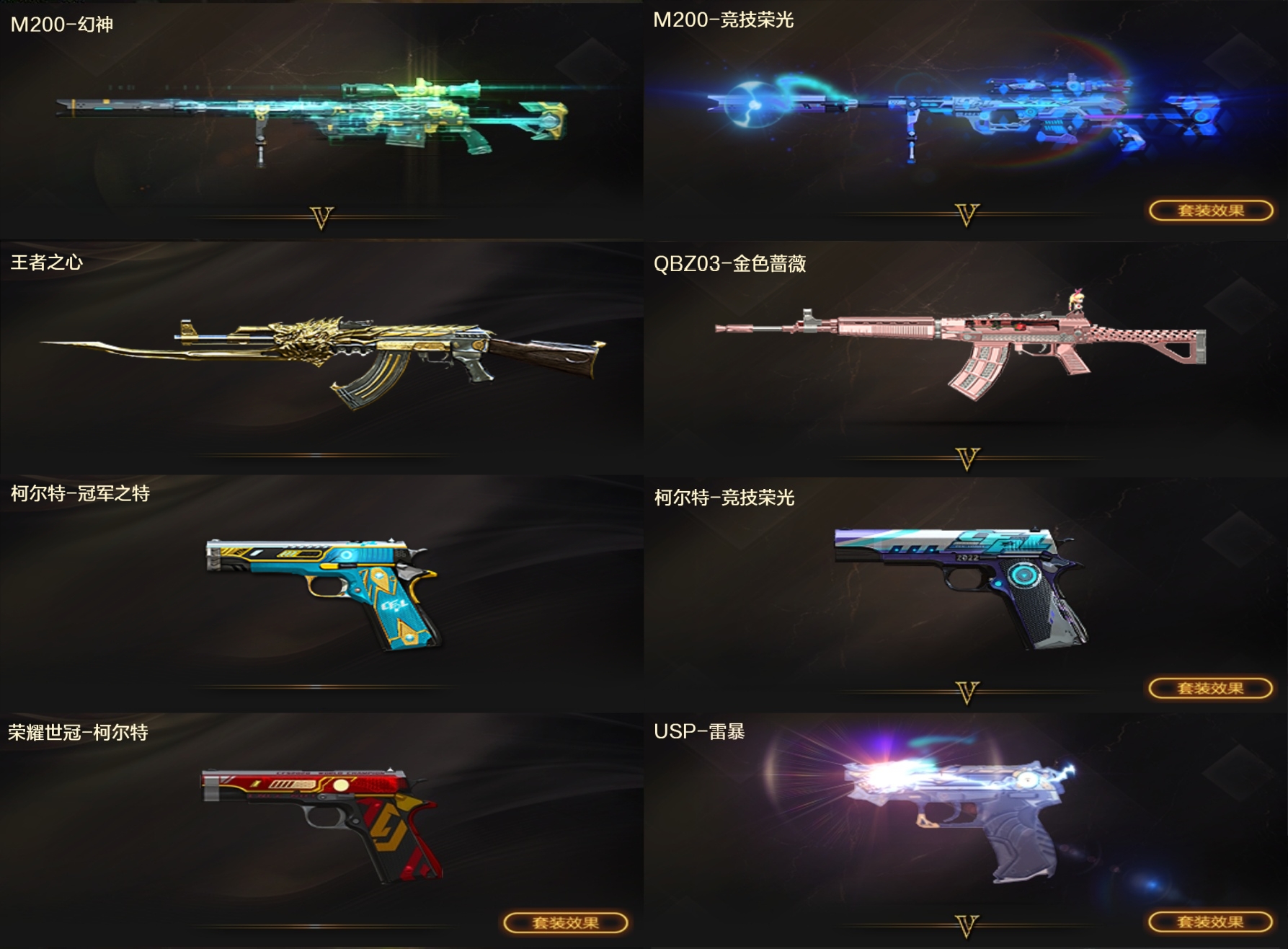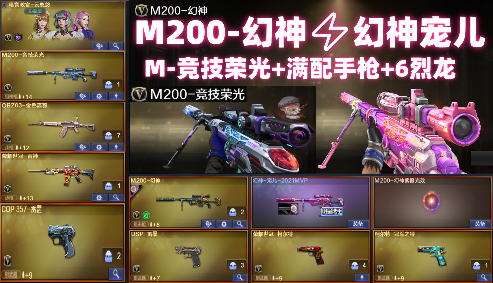 满配手枪⚡M200-幻神宠儿♥M竞技荣光套⚡冠军之特USP雷暴✅金色蔷薇雷神宠儿✅生化6烈龙盘龙死眼