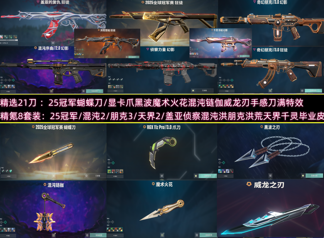 精选21刀8套:盖亚侦察混沌紫阙洪荒冠军混沌2朋克3❤️25冠军蝴蝶刀显卡爪黑波魔术火花混沌链伽威龙
