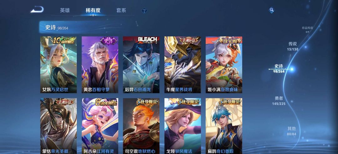 v10、509皮、刘备星传说时之思念、韩信荣耀典藏、瑶珍品传说大耳狗之梦、青丘·九尾、星域神启、画中仙、深海之息、天魔缭乱